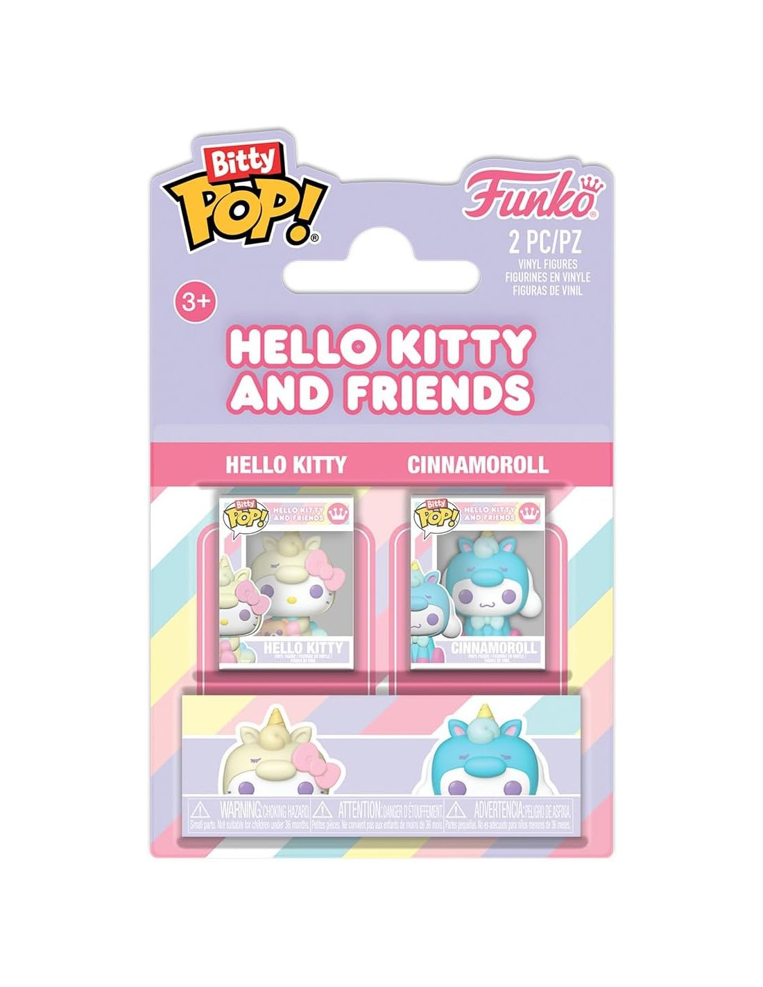 Funko Bitty POP! 2-Pack Hello Kitty and Cinnamoroll - Hello Kitty and Friends Figura en vinilo de aproximadamente 2.5cm de altura. Presentado en caja con ventana.