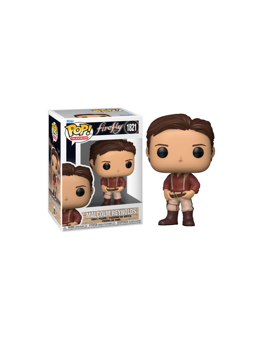 Firefly Malcom Reynolds (1821). Figura de colección de la marca Funko Pop! · Fabricada en vinilo y con una cabeza de tamaño desproporcionado como principal rasgo distintivo. · Mide unos 9cm. de altura aproximada. · Se entrega en una caja de cartón y plástico rígido transparente. · Con licencia oficial de FIREFLY.