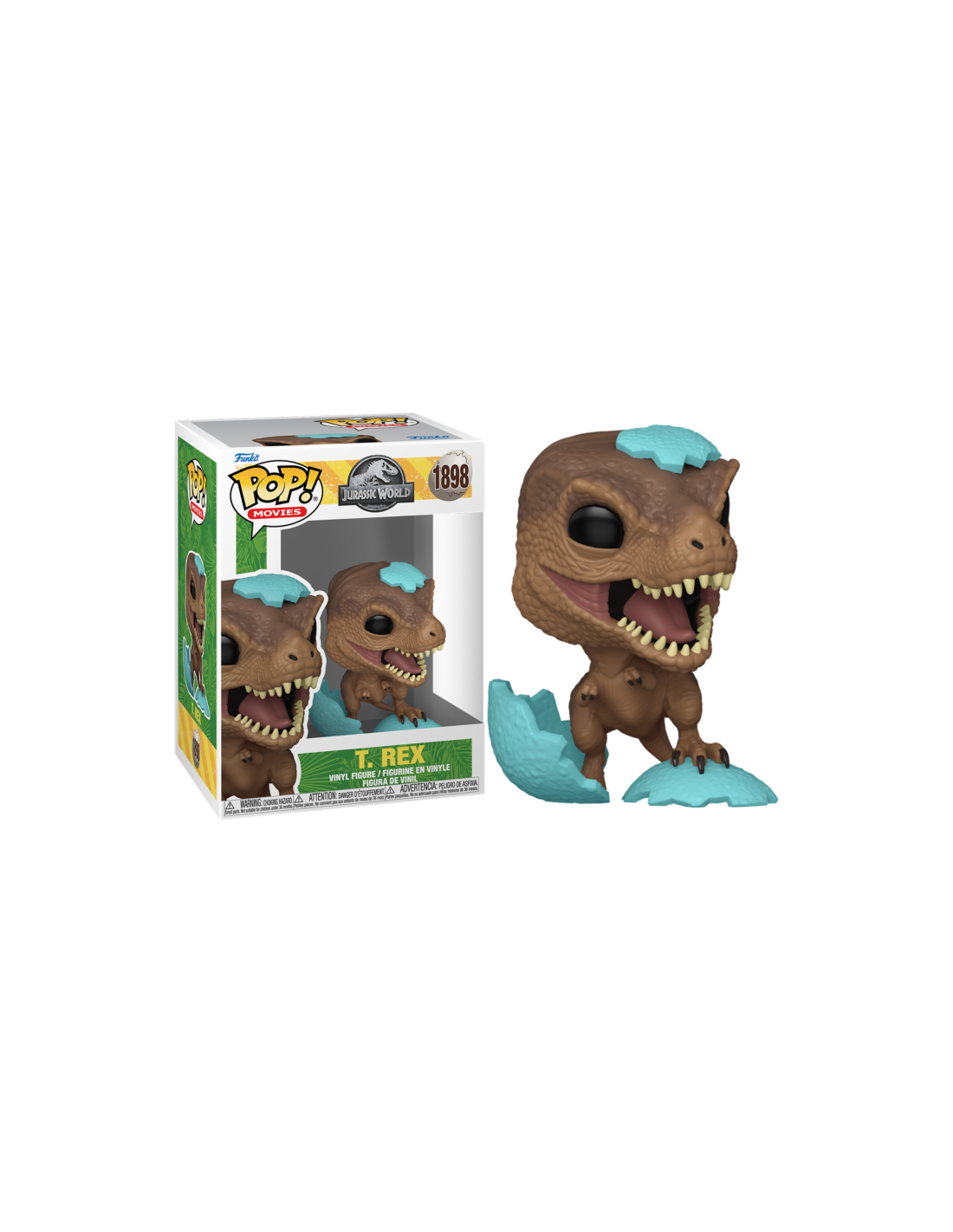 Jurassic World T. REX (1898). Figura de colección de la marca Funko Pop! · Fabricada en vinilo y con una cabeza de tamaño desproporcionado como principal rasgo distintivo. · Mide unos 9 cm. de altura aproximada. · Se entrega en una caja de cartón y plástico rígido transparente. · Con licencia oficial de JURASSIC WORLD.