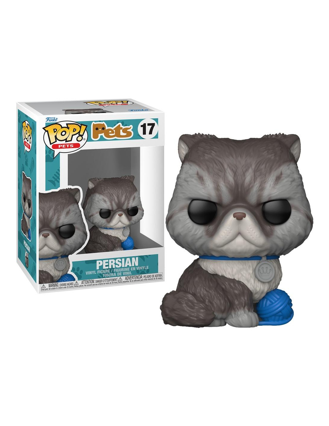 Pets Gato Persa (17). Figura de colección de la marca Funko Pop! · Fabricada en vinilo y con una cabeza de tamaño desproporcionado como principal rasgo distintivo. · Mide unos 9cm. de altura aproximada. · Se entrega en una caja de cartón y plástico rígido transparente. · Con licencia oficial de PETS.