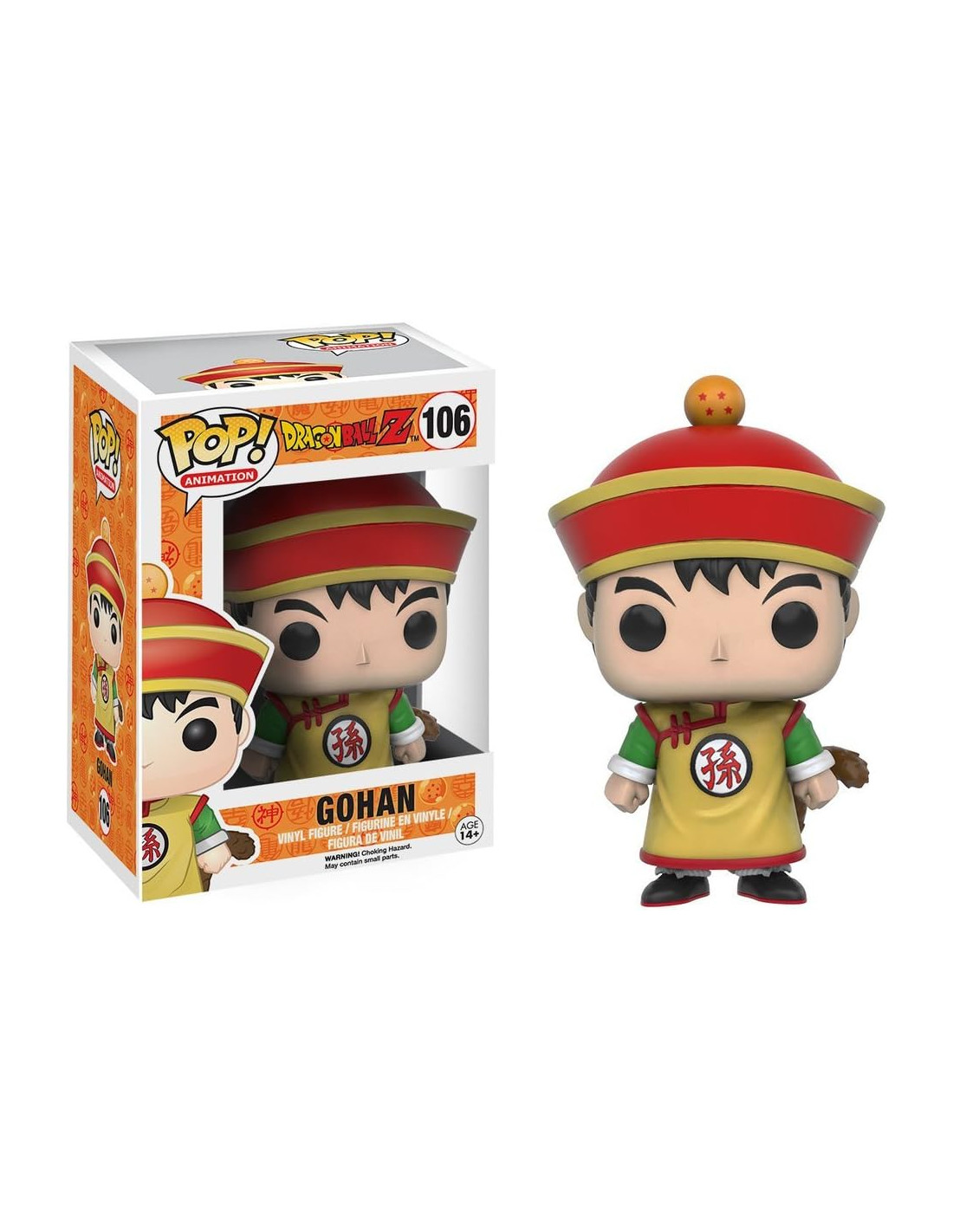 Dragon Ball Z Gohan (106). Figura de colección de la marca Funko Pop! · Fabricada en vinilo y con una cabeza de tamaño desproporcionado como principal rasgo distintivo. · Mide unos 9 cm. de altura aproximada. · Se entrega en una caja de cartón y plástico rígido transparente. · Con licencia oficial de DRAGON BALL.