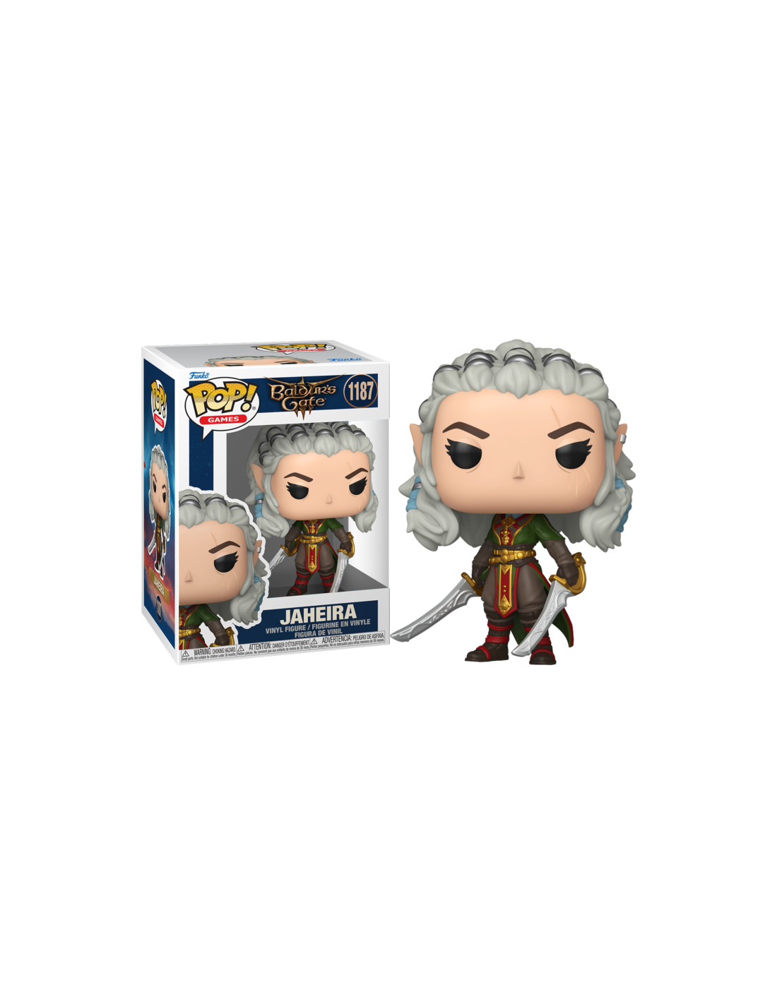 Baldur's Gate III Jaheira (1187). Figura de colección de la marca Funko Pop! · Fabricada en vinilo y con una cabeza de tamaño desproporcionado como principal rasgo distintivo. · Mide unos 9cm. de altura aproximada. · Se entrega en una caja de cartón y plástico rígido transparente. · Con licencia oficial de BALDUR'S GATE III.