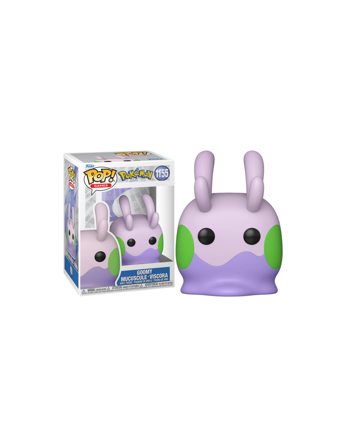 Pokémon Goomy (1155). Figura de colección de la marca Funko Pop! · Fabricada en vinilo y con una cabeza de tamaño desproporcionado como principal rasgo distintivo. · Mide unos 9cm. de altura aproximada. · Se entrega en una caja de cartón y plástico rígido transparente. · Con licencia oficial de POKEMON.