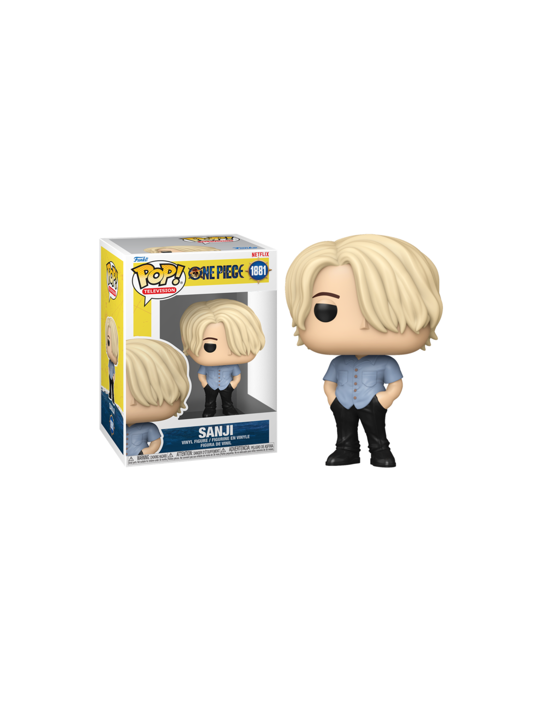 One Piece Sanji (1881). Figura de colección de la marca Funko Pop! · Fabricada en vinilo y con una cabeza de tamaño desproporcionado como principal rasgo distintivo. · Mide unos 9cm. de altura aproximada. · Se entrega en una caja de cartón y plástico rígido transparente. · Con licencia oficial de ONE PIECE.