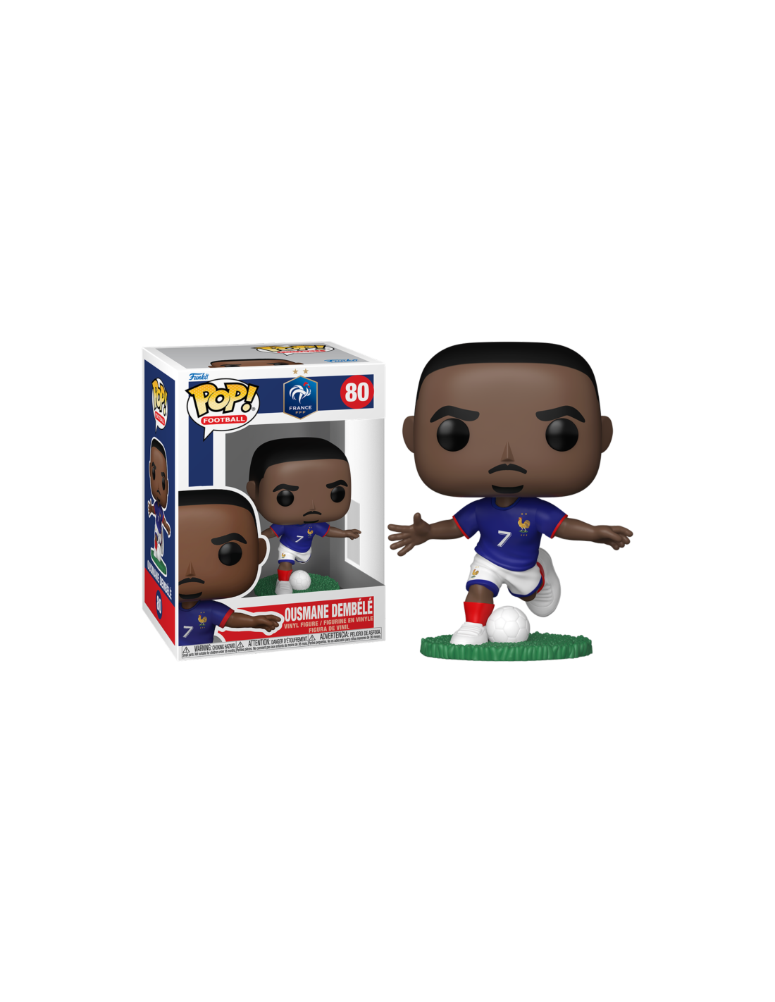 Selección Francia Ousmane Dembélé (80). Figura de colección de la marca Funko Pop! · Fabricada en vinilo y con una cabeza de tamaño desproporcionado como principal rasgo distintivo. · Mide unos 9cm. de altura aproximada. · Se entrega en una caja de cartón y plástico rígido transparente. · Con licencia oficial de SELECCIÓN FRANCIA.
