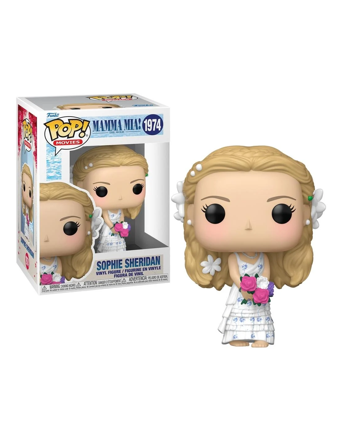 Mamma Mia Sophie Sheridan (1974). Figura de colección de la marca Funko Pop! · Fabricada en vinilo y con una cabeza de tamaño desproporcionado como principal rasgo distintivo. · Mide unos 9cm. de altura aproximada. · Se entrega en una caja de cartón y plástico rígido transparente. · Con licencia oficial de MAMMA MIA.