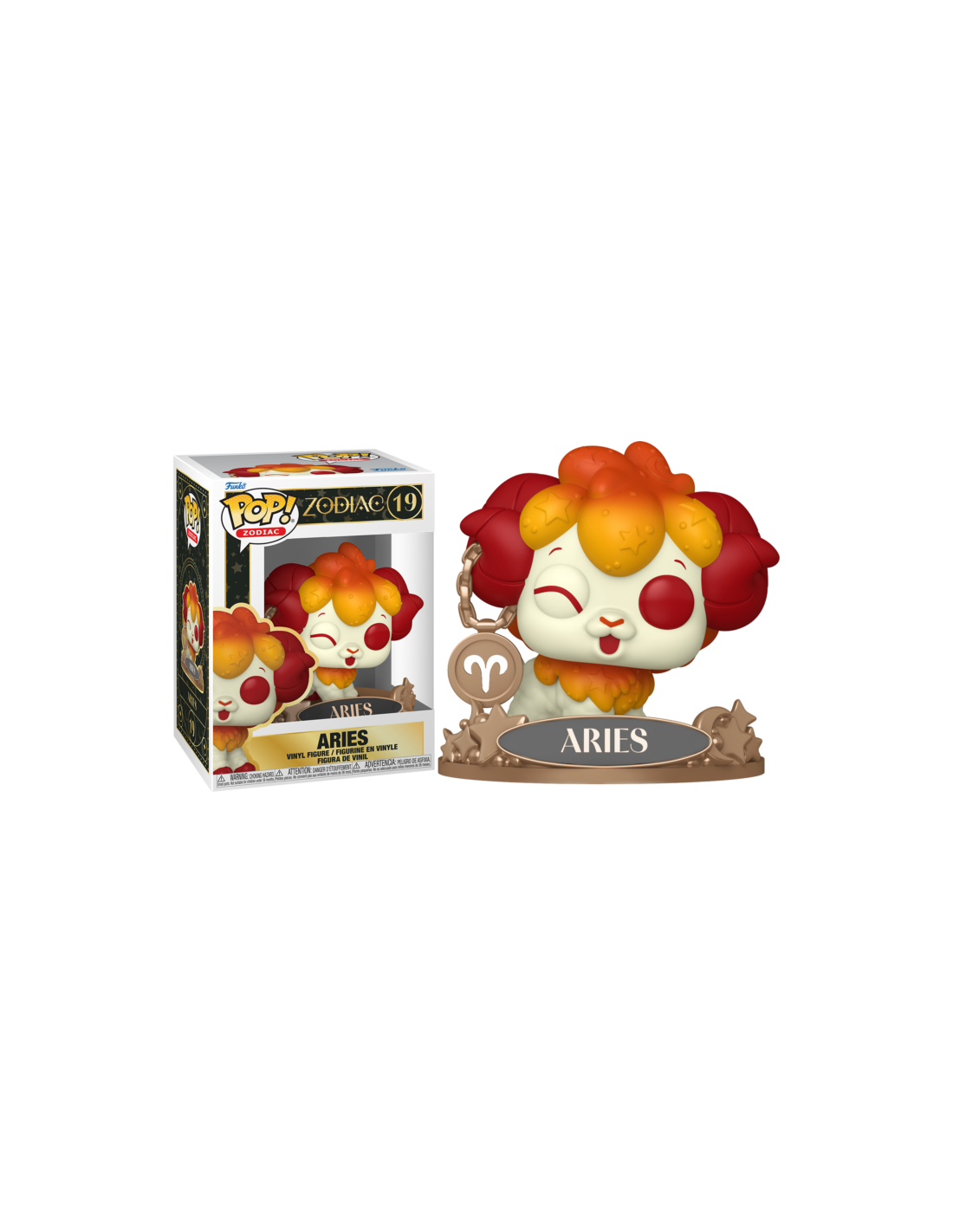 Zodiac Aries (19). Figura de colección de la marca Funko Pop! · Fabricada en vinilo y con una cabeza de tamaño desproporcionado como principal rasgo distintivo. · Mide unos 9cm. de altura aproximada. · Se entrega en una caja de cartón y plástico rígido transparente. · Con licencia oficial de ZODIAC.