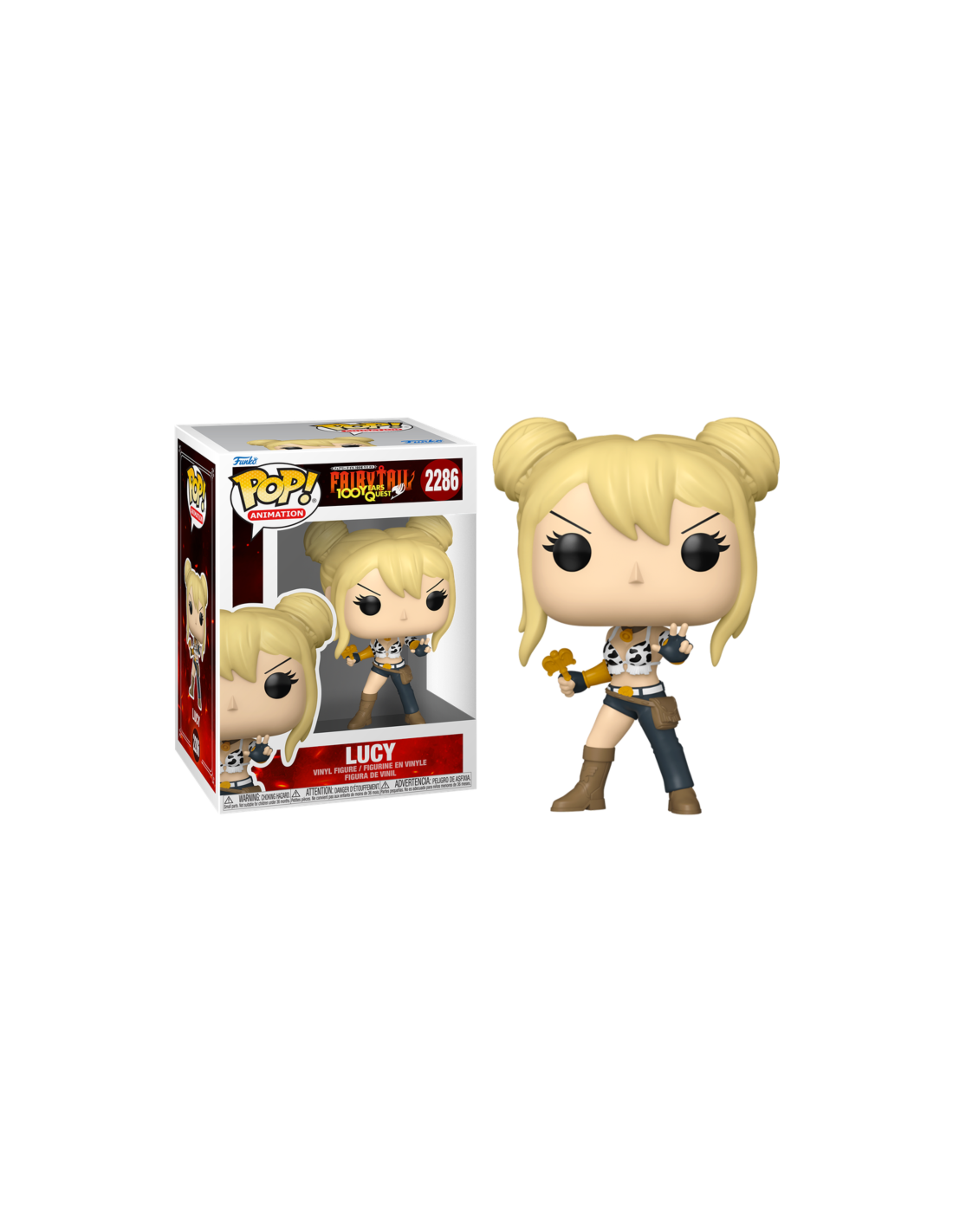 Fairy Tail (100 Year Quest) Lucy (2286). Figura de colección de la marca Funko Pop! · Fabricada en vinilo y con una cabeza de tamaño desproporcionado como principal rasgo distintivo. · Mide unos 9cm. de altura aproximada. · Se entrega en una caja de cartón y plástico rígido transparente. · Con licencia oficial de FAIRY TAIL