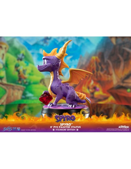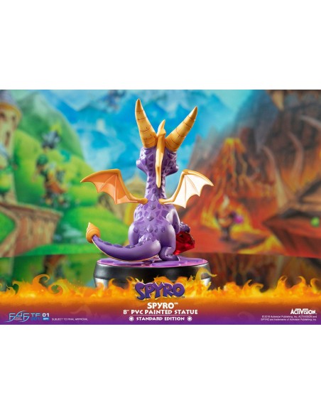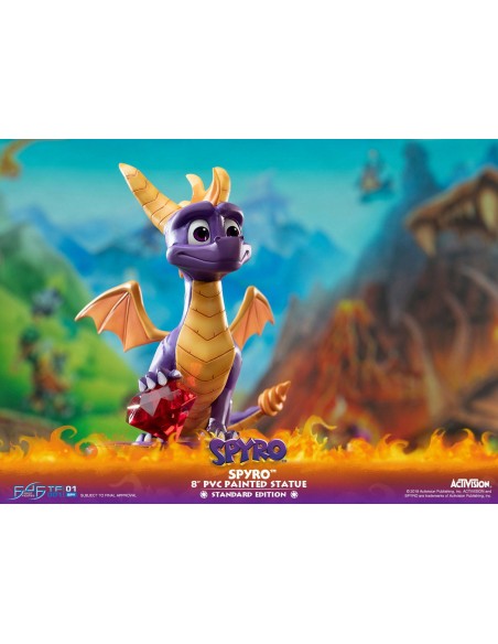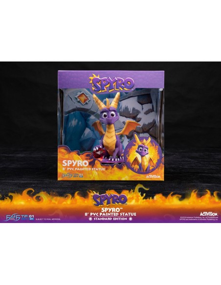 Estatua de Spyro del videojuego ´Spyro the Dragon´. Fabricada en PVC, tamaño aprox. 20 cm. Viene con una base en una caja con ventana.