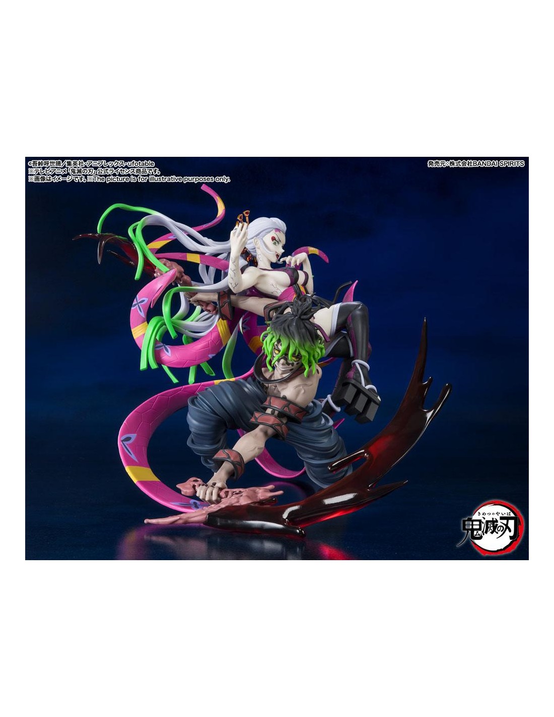 Tamashii Nations presenta esta figura de Daki y Gyutaro dentro de su colección Figuarts Zero, tal como aparecen en la serie de anime "Kimetsu no Yaiba". Esta figura mide unos 20 centímetros, está fabricada en PVC e incluye varios efectos y base soporte para su exposición.