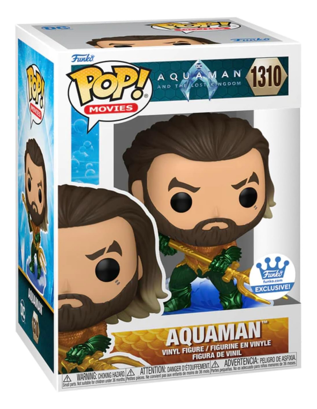 DC Aquaman y el Reino Perdido Aquaman Special Edition (1310). Figura de colección de la marca Funko Pop! · Fabricada en vinilo y con una cabeza de tamaño desproporcionado como principal rasgo distintivo. · Mide unos 9 cm. de altura aproximada. · Se entrega en una caja de cartón y plástico rígido transparente. · Con licencia oficial de AQUAMAN