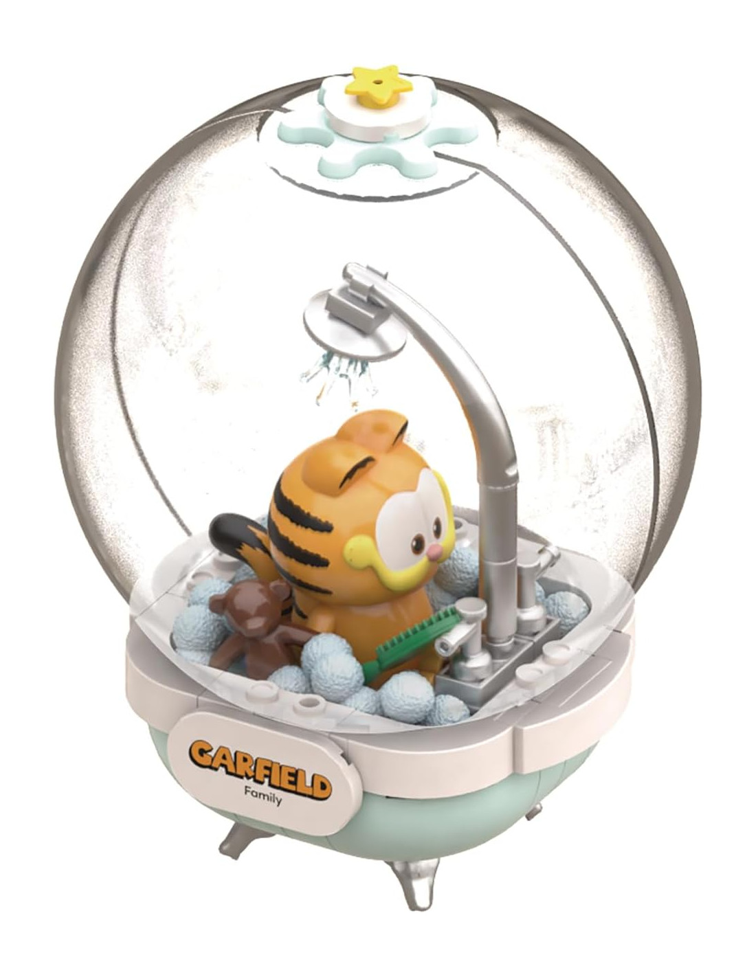 Pantasy presenta, dentro de la colección Crystal Ball Series, el set de construcción de Garfield Cozy Bath. Una vez montado tiene unas medidas de 14 x 9,5 x 9,5 cm y está basado en el personaje de los dibujos "Garfield". El set está formado por 140 piezas. Incluye un manual de instrucciones.