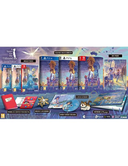 A Space for the Unbound Edición Estándar incluye: Juego, Manual “A Space for the Unbound Tales” y Tarjeta de descarga BSO Digital. ¡Regresa a los 90! ¡Viaja a la Indonesia de esa década mágica! Descubre las zonas rurales de Indonesia y relájate sumergiéndote de lleno en su entorno, todo ello con un toque sobrenatural. Habla con el resto de habitantes del pueblo y descubre sus historias. Entra en las mentes de las personas como en la peli Origen. Disfruta de los temas compuestos por Masdito «Ittou» Bachtiar.La edición incluye: -Caja Premium Coleccionista -Juego Completo (PS4, PS5 o Switch) -Libreto “A Space for the Unbound Tales” -Llavero de “Almirante” -Tarjeta Descarga con la BSO -Libro de Arte (250 páginas) repleto de piezas exclusivas del director y artista Dimas Novan -Disco con la BSO -Broche ‘Flor Dorada’ -Art Print Exclusiva