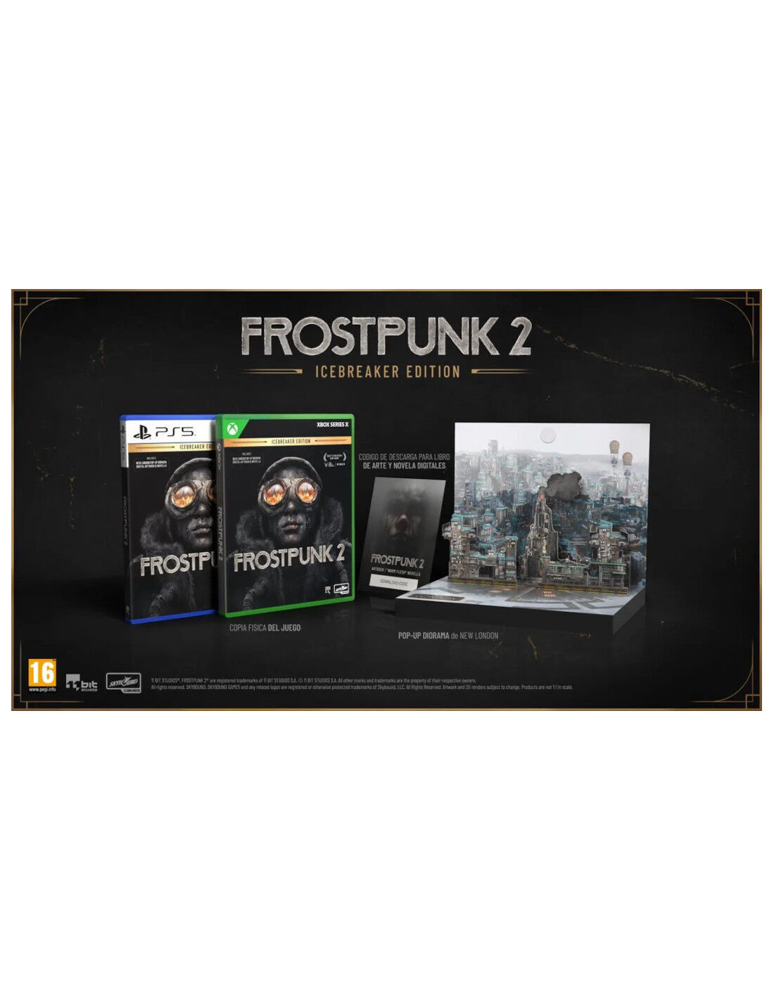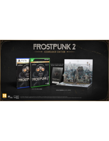 La ciudad crece. El mundo se ve invadido por un invierno perenne, lo que convierte la expansión de la ciudad en la única vía para la supervivencia de la humanidad. Para crecer, la metrópolis necesita recursos como carbón y petróleo, y sus ciudadanos necesitan alimentos y calor. En Frostpunk 2, tu trabajo consiste en hacer frente a este interminable círculo de oferta y demanda. Riesgos de la naturaleza humana. El número de tus ciudadanos crece constantemente, lo que hace que la tarea de gobernarlos y satisfacer sus demandas sea todo un reto. Como regente, tendrás que maniobrar con cuidado entre los intereses de los grupos variados que habitan la ciudad. Facciones. Los habitantes de tu ciudad quieren tener voz y voto en tu gestión. Cada facción tiene su propia ideología e ideas para el futuro, pero también tienen algo en común: una insaciable sed de poder. Elige bien a tus aliados en el Consejo. Modo Historia y Creador de Utopías. La historia de Frostpunk 2 presenta una saga de varios capítulos ambientada en los páramos gélidos. Esta campaña te permite sentir el peso del liderazgo al asumir la responsabilidad de miles de vidas a lo largo de la vida del regente. Al mismo tiempo, el modo sandbox, llamado Creador de utopías y que cuenta con tiempo de juego infinito, te permite realizar experimentos sociales y de infraestructuras ilimitados. La edición incluye: -Diorama desplegable de Nuevo Londres muy elaborado, perfectamente integrado en el empaque con funda envolvente, que permite mostrar el corazón de la ciudad helada de Frostpunk en cualquier momento y lugar -Código de canje del libro de arte oficial de Frostpunk 2, que ofrece una mirada exclusiva entre bastidores a la creación del juego, con arte conceptual, bocetos y mucho más