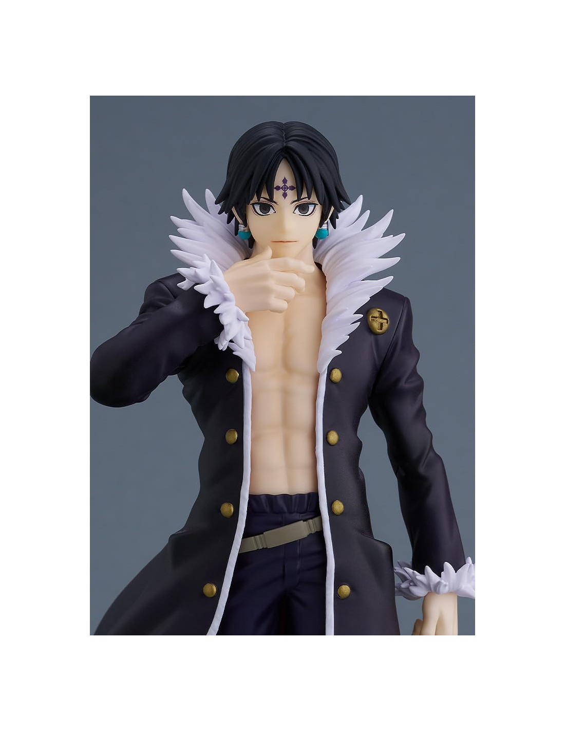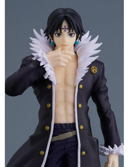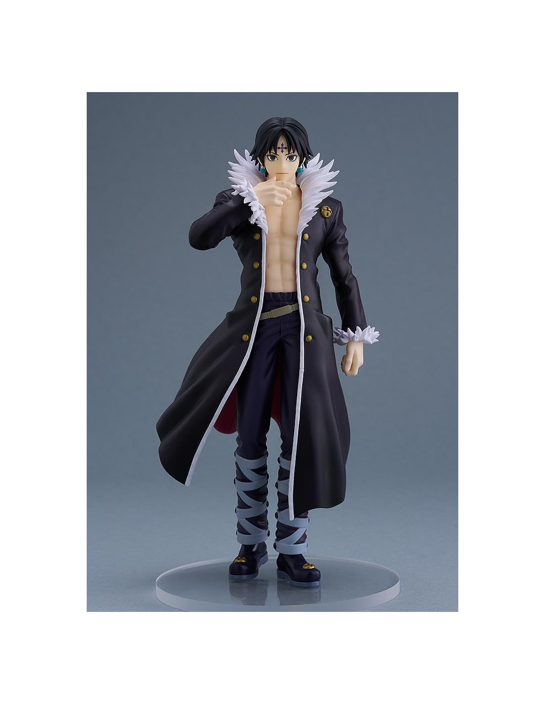 Good Smile Company presenta, dentro de la línea Pop Up Parade, la figura de Chrollo Lucilfer (o Quwrof Wrlccywrlir). Está basada en su aparición en el anime "Hunter x Hunter" como líder de la Brigada Fantasma. Esta figura no articulada mide aproximadamente 18 cm y se presenta pintada con excelentes detalles, lista para exponer. Incluye una base circular transparente.