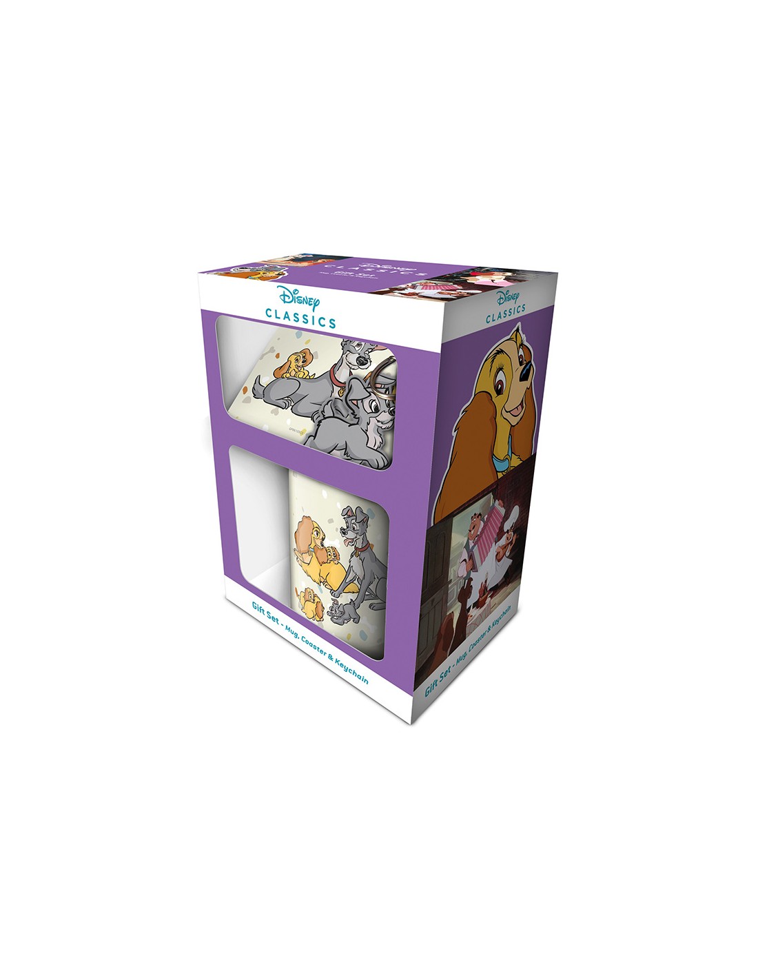 Set Gift Disney La Dama y el Vagabundo Taza 315ml + Llavero + Posavasos Pyramid