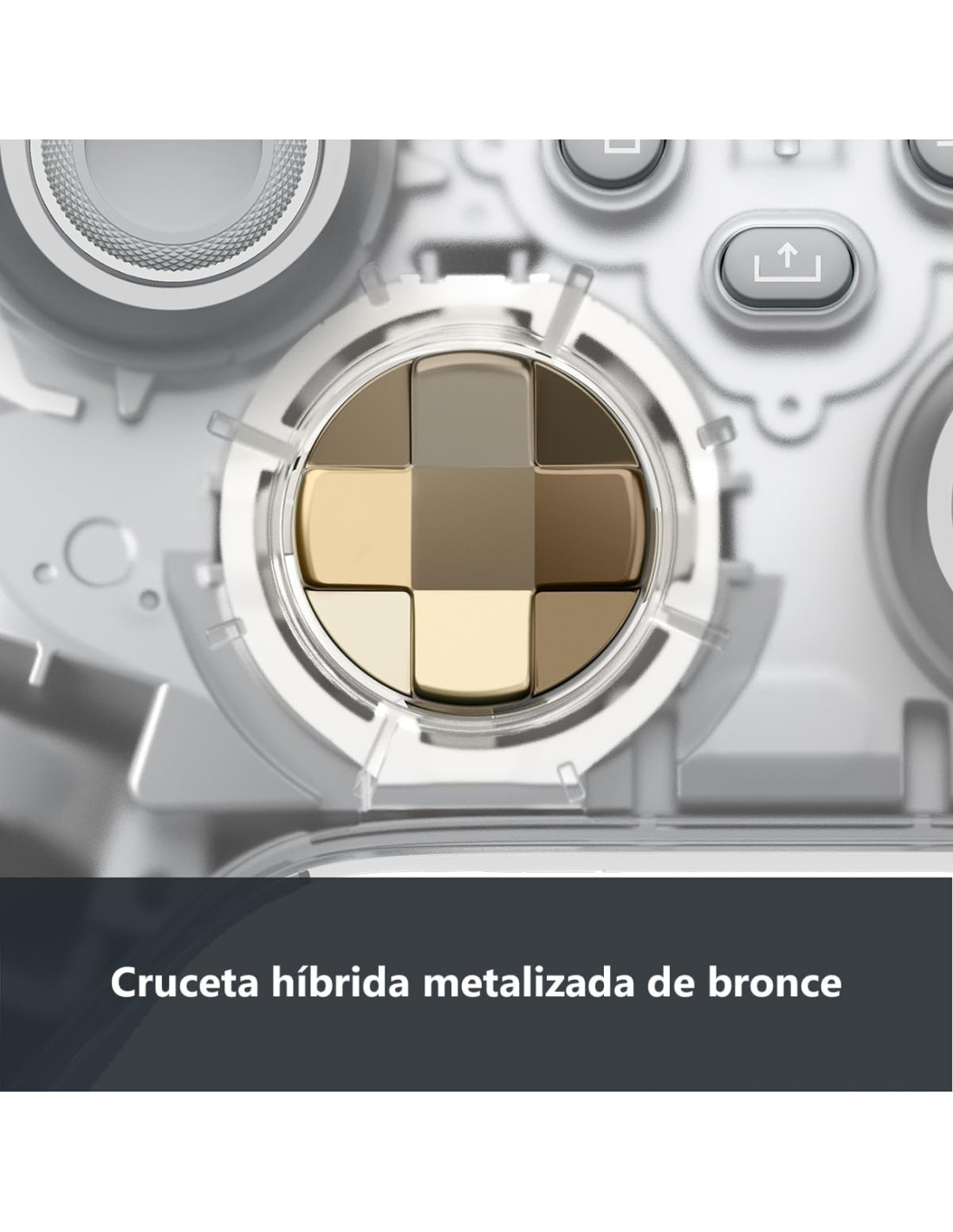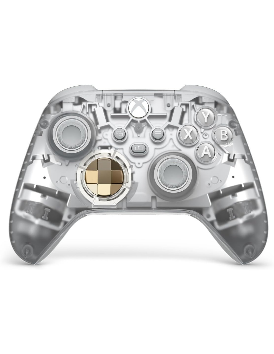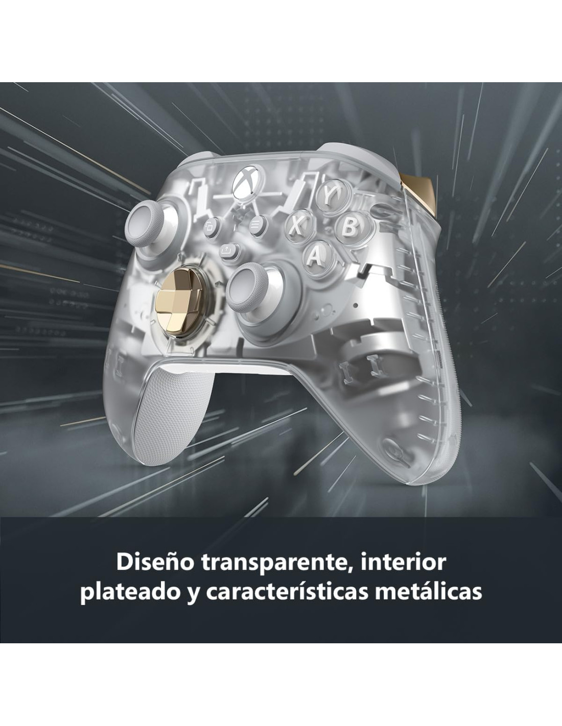 Gran diseño Descubre los misterios con el Mando inalámbrico Xbox: Ghost Cipher Special Edition, con un diseño transparente, un interior plateado, detalles metálicos y más. Mira a través de la carcasa superior y los laterales de los agarres transparentes para ver cómo brillan las piezas de color plateado del interior. Mayor control Controla la acción con agarres texturizados de color gris ceniza por la parte posterior de la carcasa. Mantén el objetivo con elegancia con los gatillos metálicos de bronce y una cruceta metálica de bronce que hace juego. Captura y comparte contenido sin problemas, como capturas de pantalla, grabaciones y más con el botón Compartir dedicado. Plug and play Conéctate mediante el puerto USB-C para un funcionamiento Plug and play directo a tu consola o PC. La compatibilidad con pilas AA se incluye en la parte trasera. Juega durante horas Consigue hasta 40 horas de autonomía. Además, conecta cualquier auricular compatible en el conector de audio de 3,5 mm. Reasigna botones Usa la app Accesorios de Xbox para reasignar botones y crear perfiles de mando personalizados para tus juegos favoritos. Empareja rápidamente, juega y cambia entre dispositivos como consola, PC y dispositivos móviles.* Gran tecnología Empareja rápidamente, juega y cambia entre dispositivos como consola, PC y dispositivos móviles. Tiene tecnología Xbox Wireless y Bluetooth® para jugar sin cables en consolas, PC, teléfonos y tabletas compatibles.