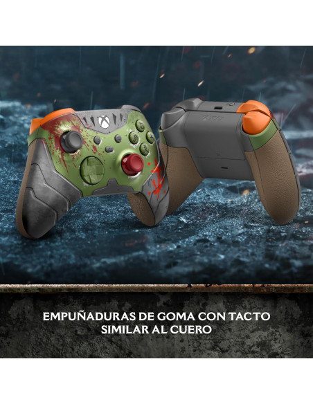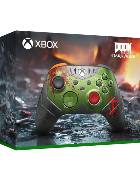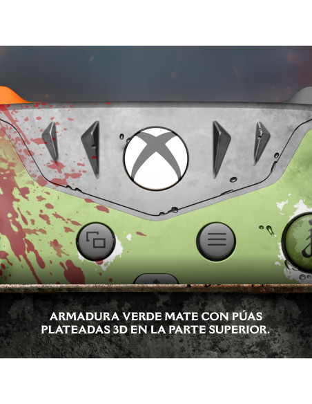 Ármate con el nuevo mando de edición limitada de DOOM: The Dark Ages, inspirado en la armadura del Doom Slayer. Lucha contra hordas de demonios con la armadura verde satinada inspirada en el DOOM Slayer, equipada con un casco con pinchos plateados en 3D y fundas chapadas en la parte superior. Agarra las empuñaduras de goma con acabado en cuero sintético para mantenerte en el corazón de la acción. Apunta con la inquietante palanca roja que recuerda a la compuerta del pecho del DOOM Slayer. Libera un poder ancestral con los botones verdes ABXY, evocando el alfabeto de las Centinelas. Desenvaina el Escudo-Motosierra con el gatillo izquierdo naranja para sellar tus intenciones letales.