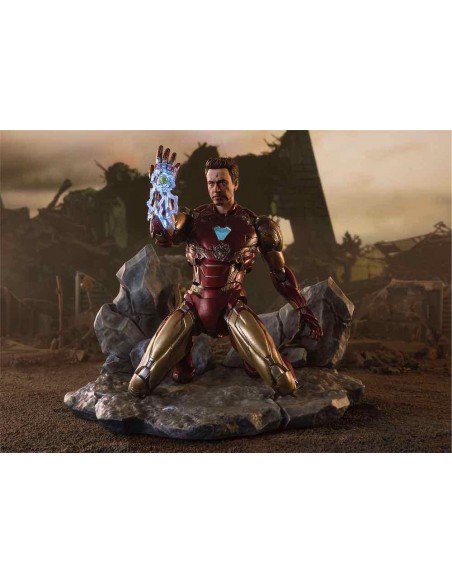 Tamashii Nations presenta para la línea S.H. Figuarts la figura de Iron Man Mk-85 (I Am Iron Man) version, basada en la película "Avengers: Endgame". Se trata de una figura articulada de 16 cm de alto hecha en PVC. Incluye la figura de Tony Stark con el Guantelete de Poder, un efecto de aterrizaje, un claw blaster, 1x mano izquierda y 2x manos derecha alternativas, cabeza opcional (Iron Man), partes de un diorama que te permiten recrear la escena de despedida de Pepper y Peter y efectos de ataque.