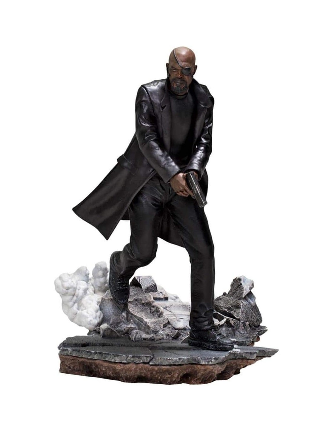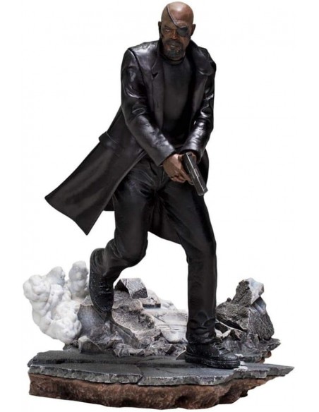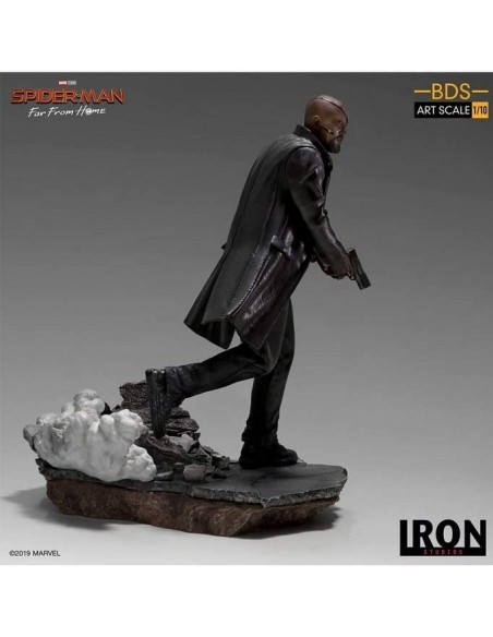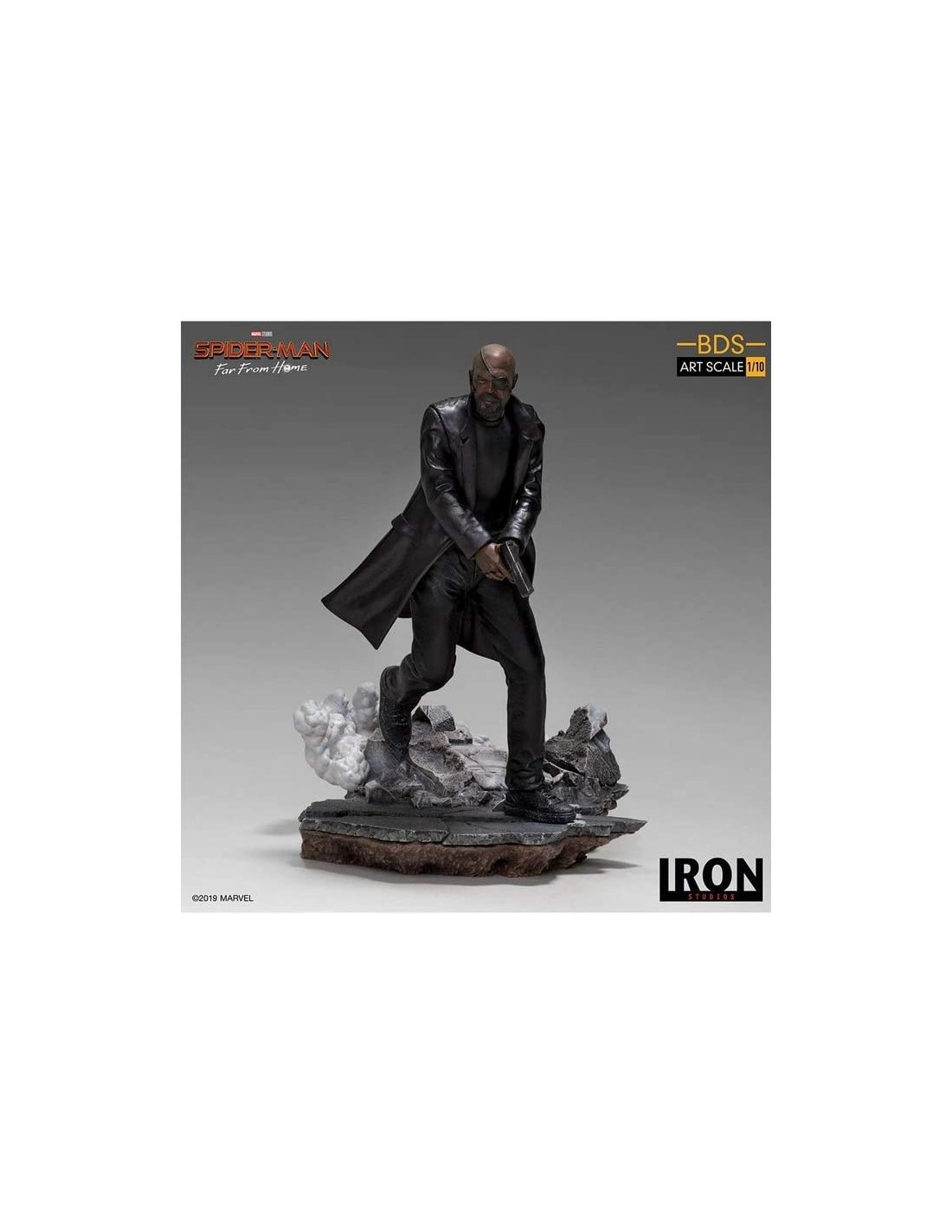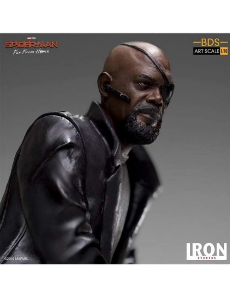 Estatua de poliresina de Iron Studios de Nick Fury a escala 1/10 de la película "Spider-Man: Lejos de casa (Far for Home)". Licencia oficial.