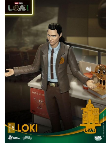 Diroama de PVC de la línea "D-Stage" de Marvel Studios de la serie Loki del personaje Loki, tamaño aprox. 16 cm. Viene en una caja de regalo.