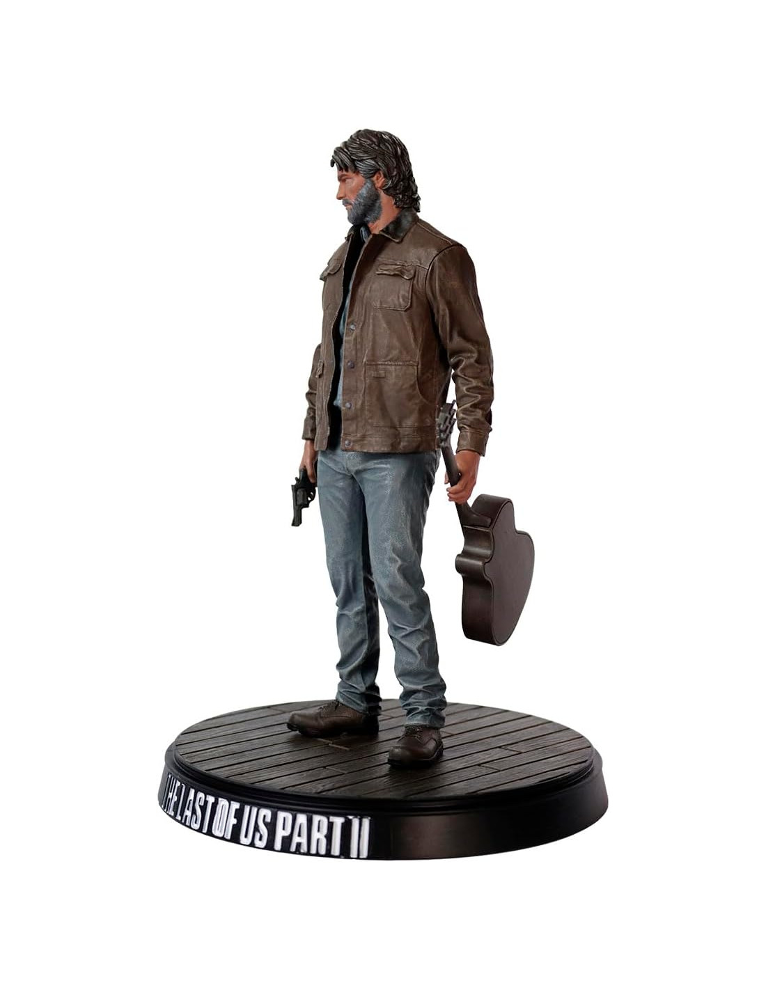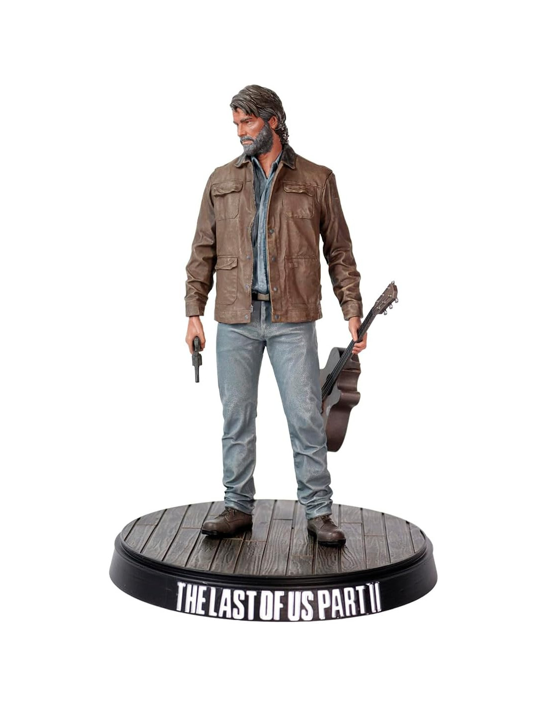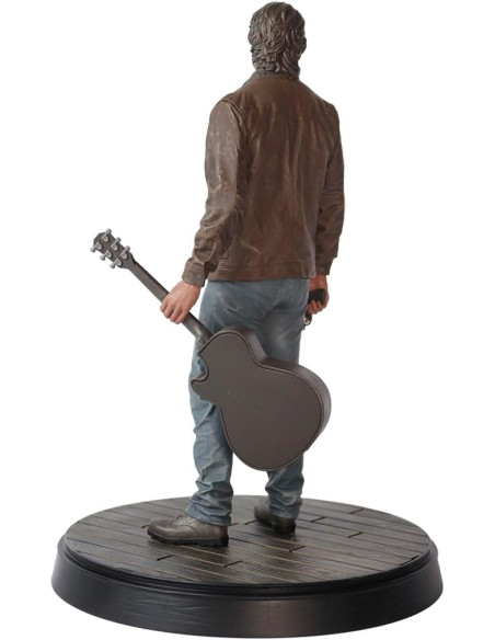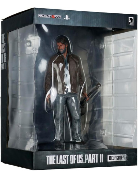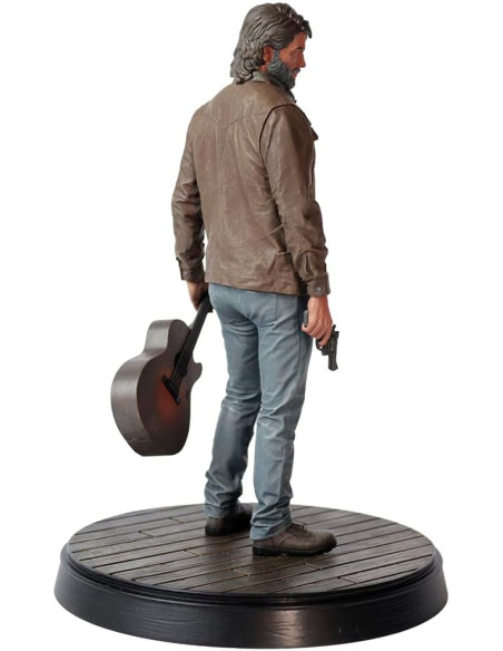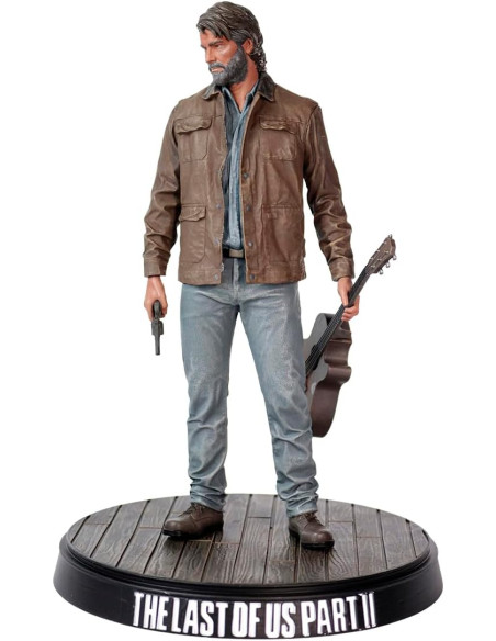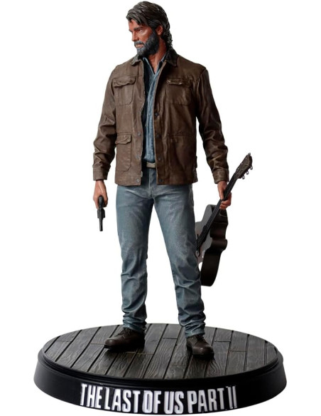 Dark Horse presenta de nuevo la figura de Joel, inspirada en su aparición en el videojuego "The Last of Us Part II". Esta figura de 23 cm de altura ha sido pintada con un nivel de detalle excepcional. El personaje sostiene una pistola en una mano y su icónica guitarra en la otra. Está fabricada con PVC y se presenta dentro de una caja con ventana. Cuenta con una base circular personalizada con el logotipo del videojuego.