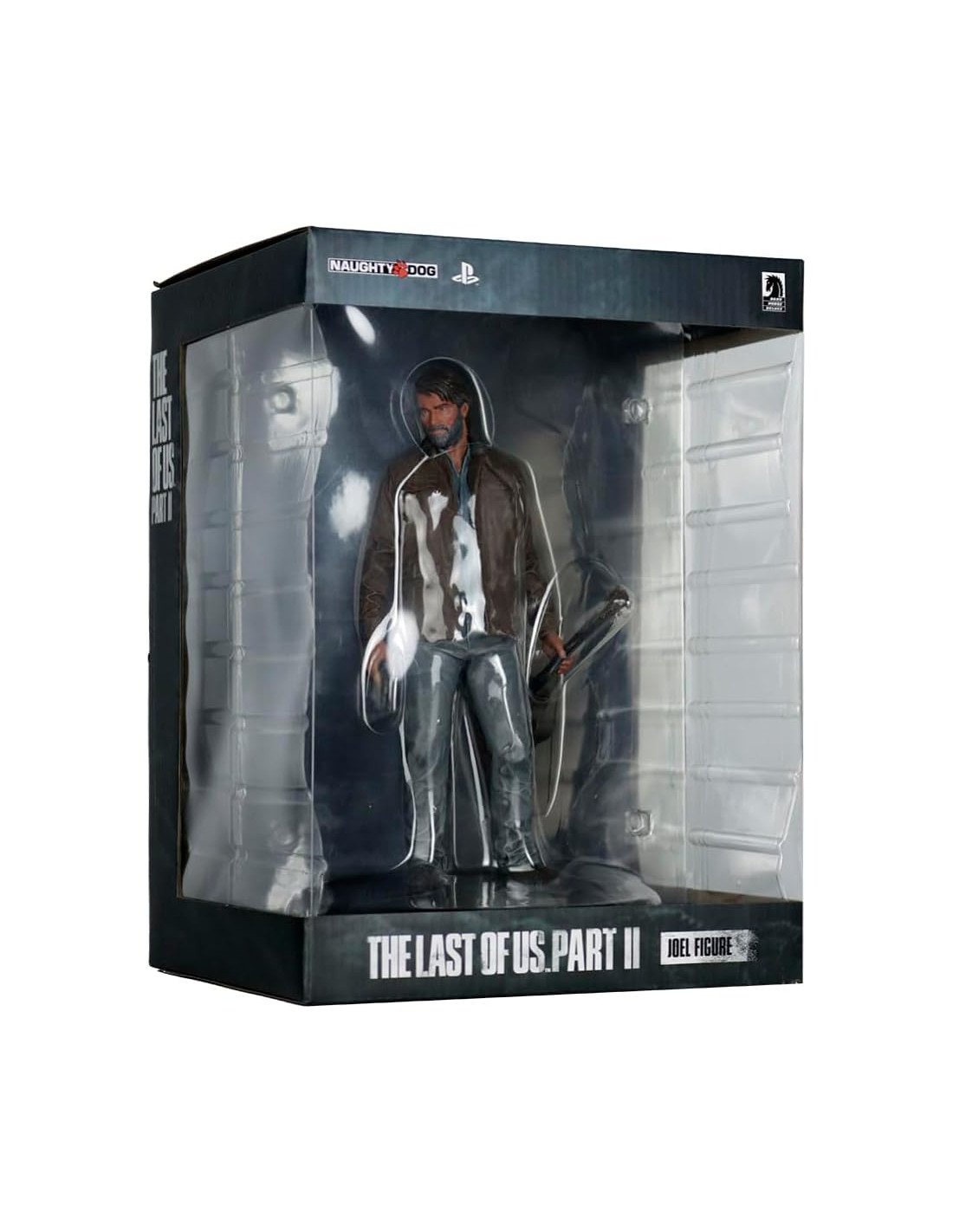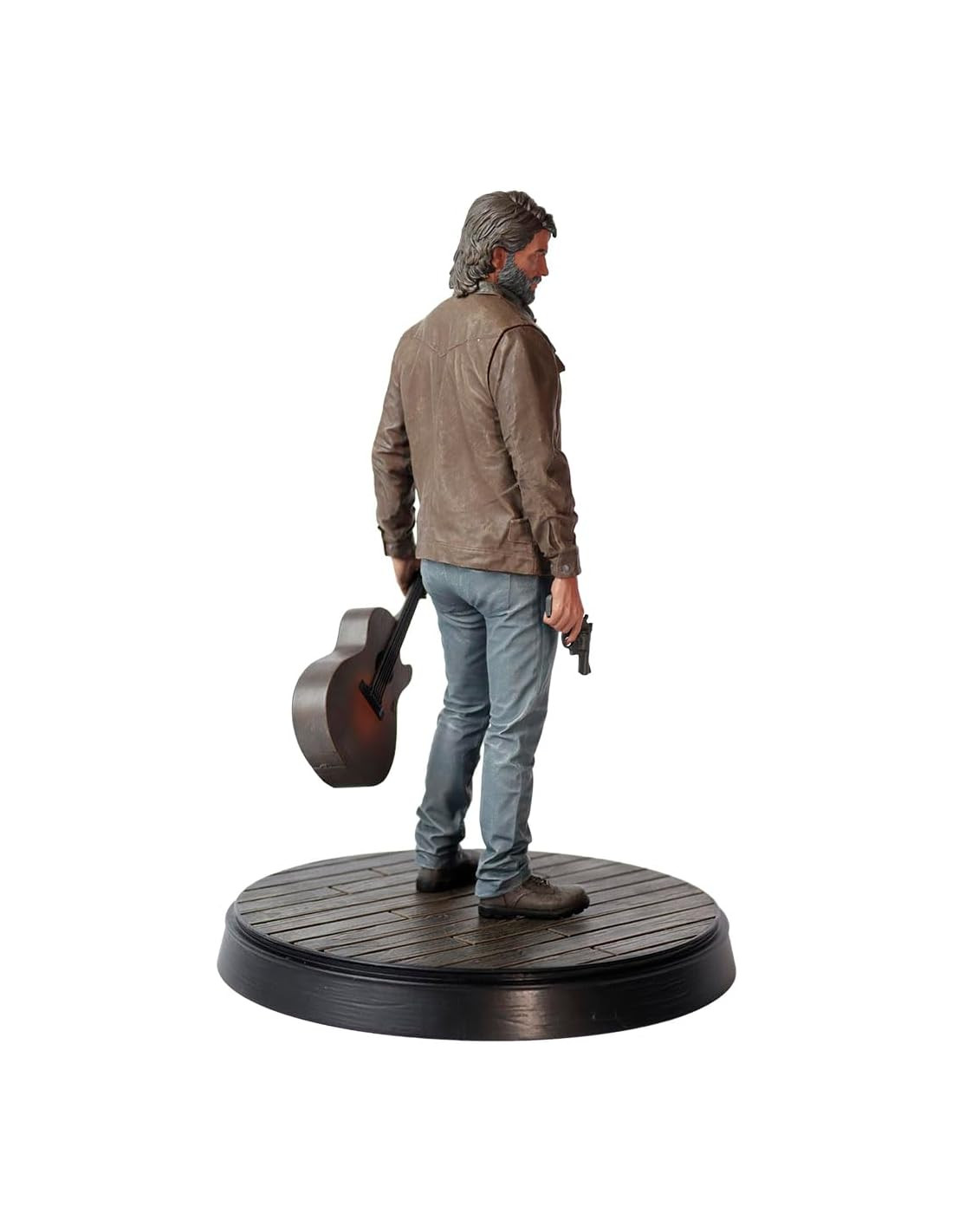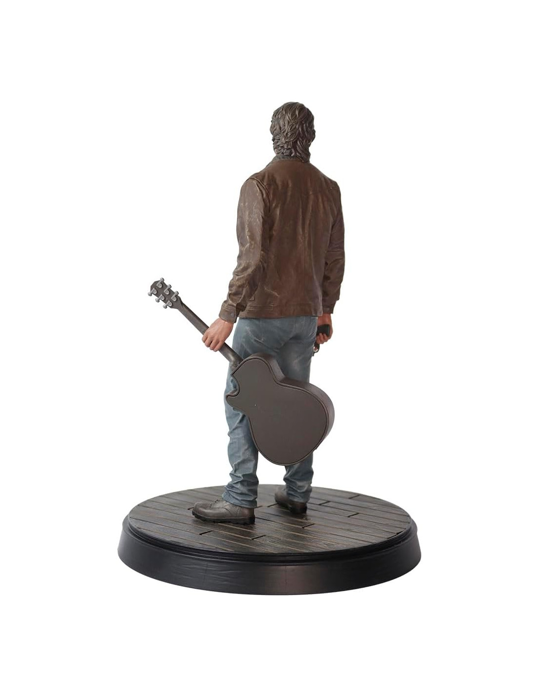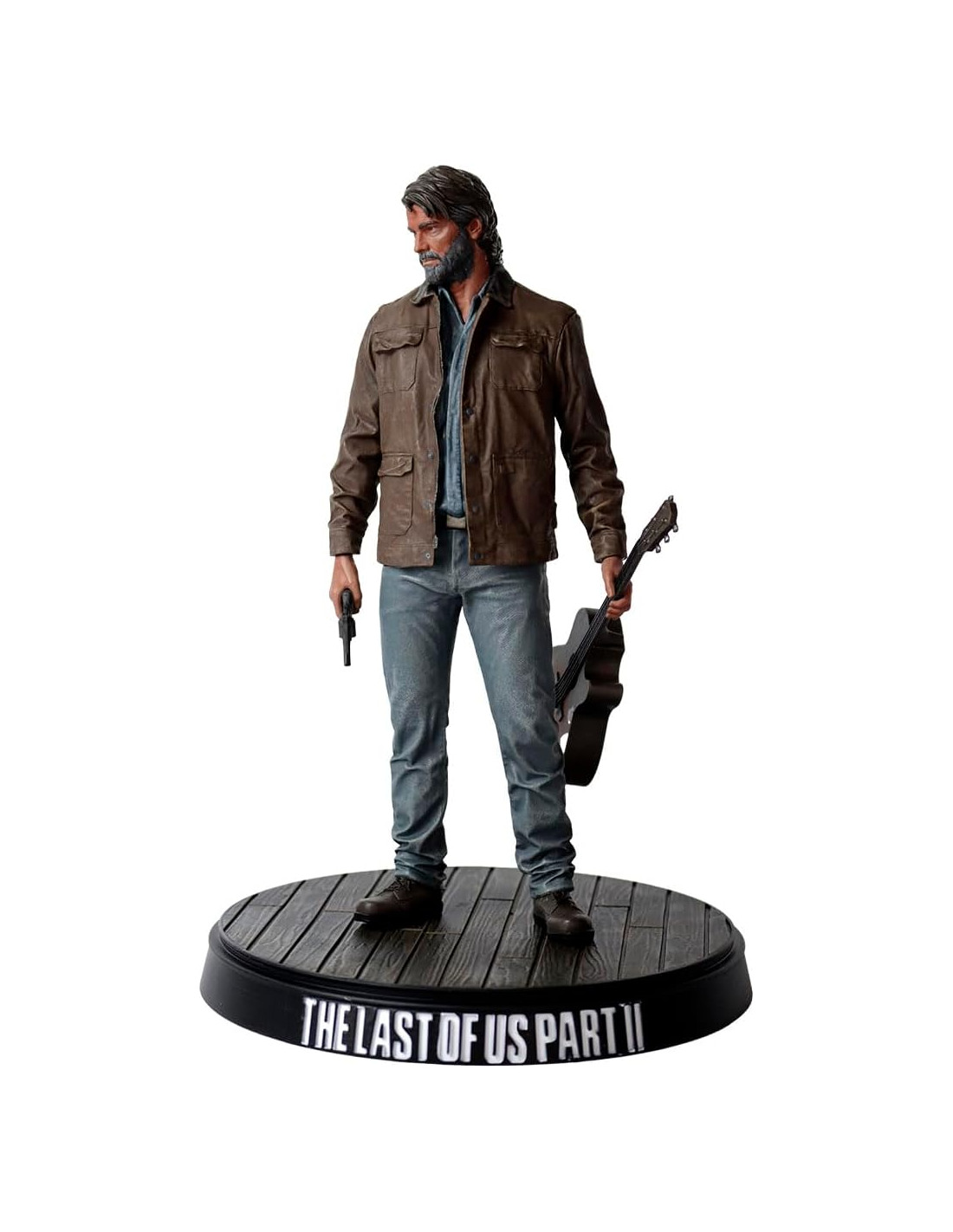 Dark Horse presenta de nuevo la figura de Joel, inspirada en su aparición en el videojuego "The Last of Us Part II". Esta figura de 23 cm de altura ha sido pintada con un nivel de detalle excepcional. El personaje sostiene una pistola en una mano y su icónica guitarra en la otra. Está fabricada con PVC y se presenta dentro de una caja con ventana. Cuenta con una base circular personalizada con el logotipo del videojuego.