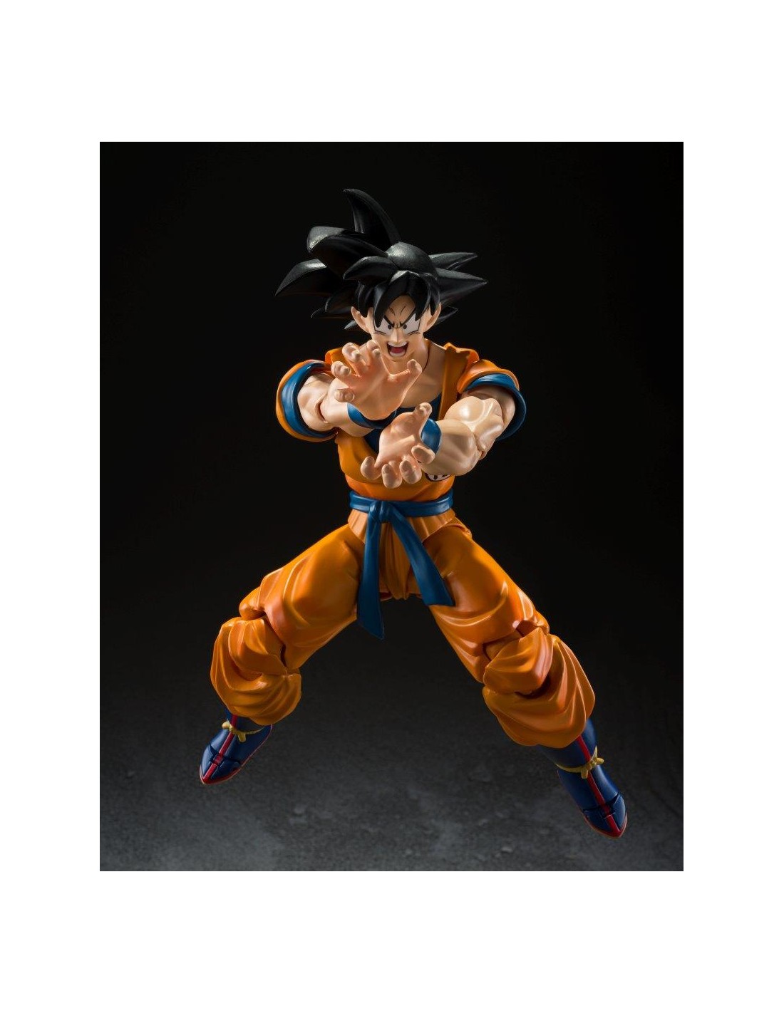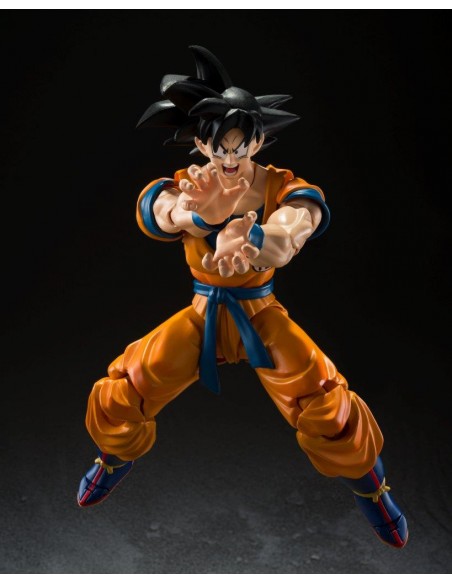 Bandai presenta para la colección SH Figuarts la figura de Son Goku tal y como aparece en la próxima película "Dragon Ball Super Hero"(2022). Esta figura articulada mide unos 16 cm y está hecha en PVC. Incluye manos y cabezas alternativas y ha sido pintada y esculpida tal y como se ve en el último trailer de la película.