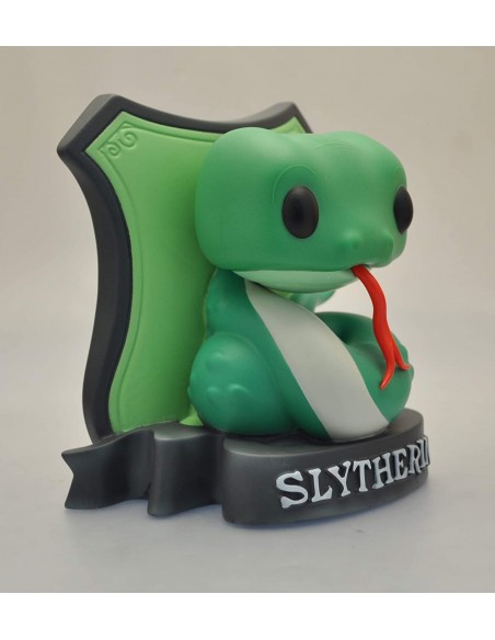 Plastoy presenta esta vistosa hucha de la casa Slytherin, en su graciosa versión Chibi, basada en la casa de la Escuela Hogwarts, de la saga de películas de Harry Potter.