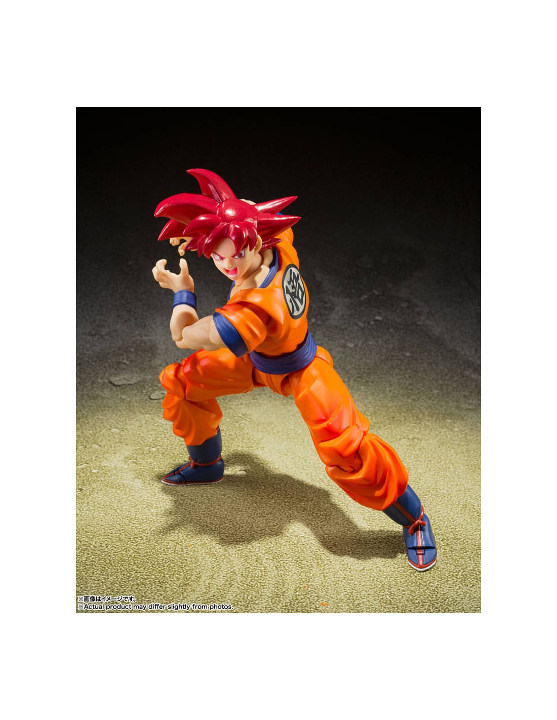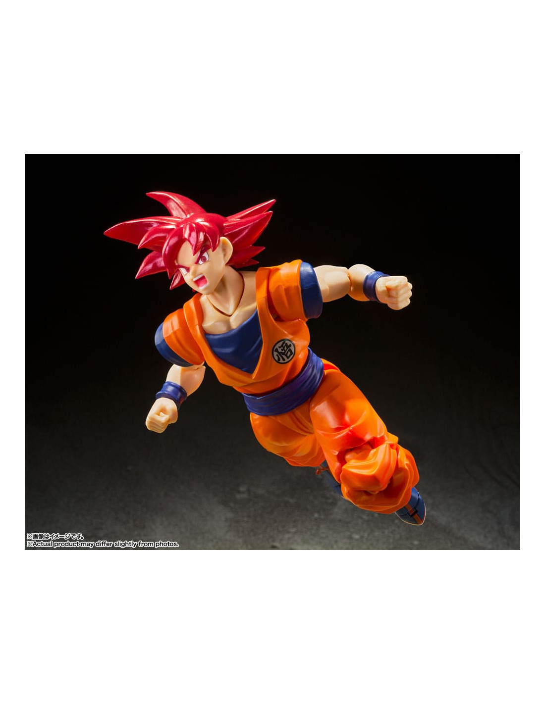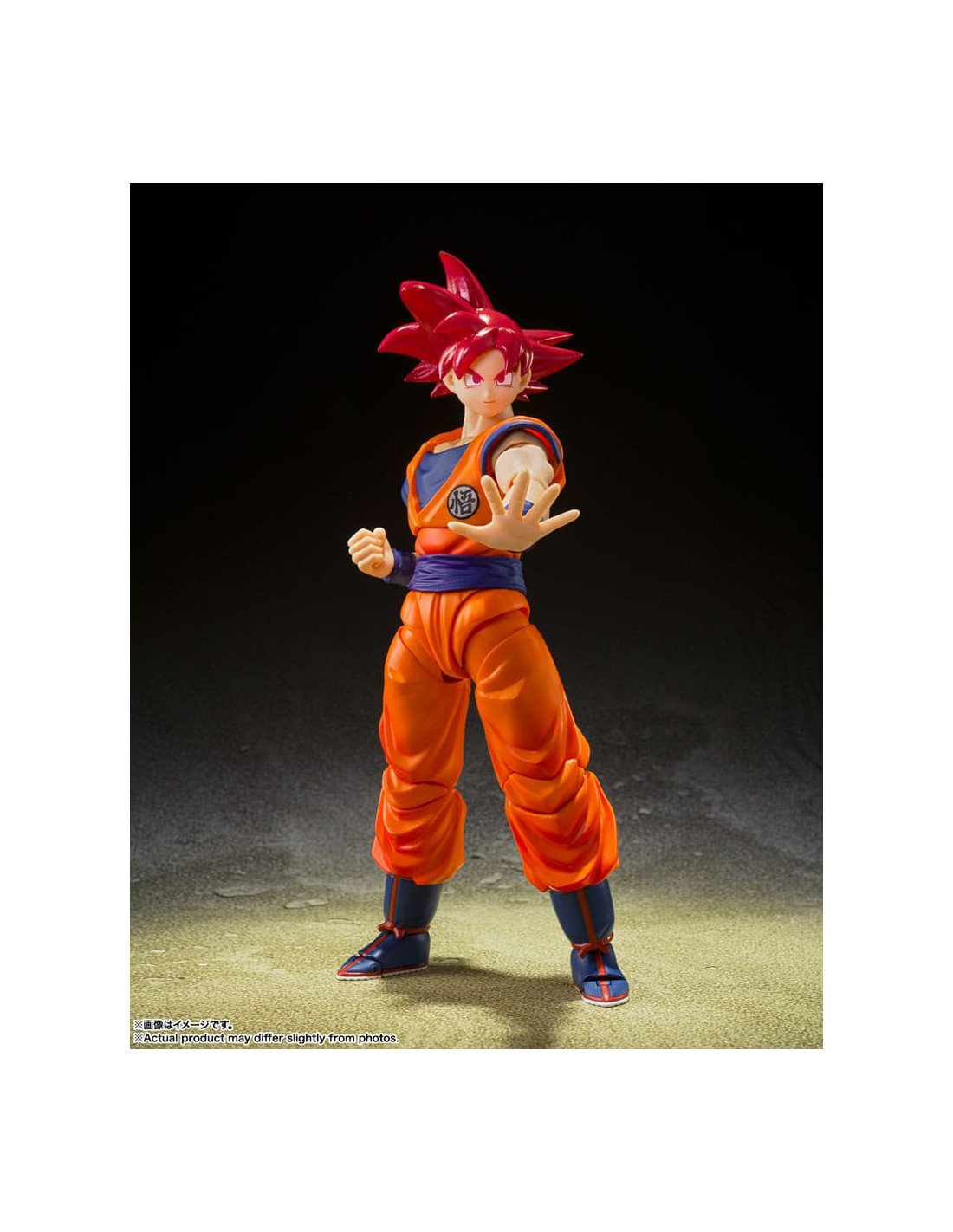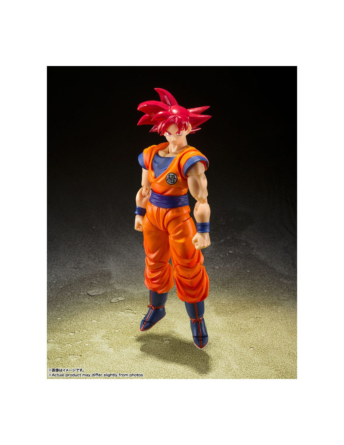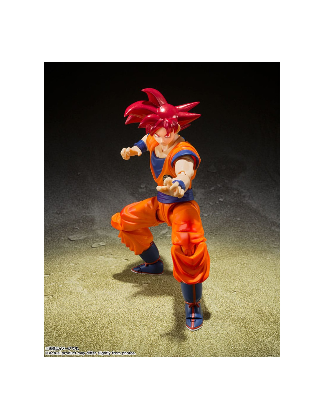 Tamashii Nations presenta, dentro de la colección S.H Figuarts, la figura de Super Saiyan God Son Goku Saiyan God of Virtue. Mide 14 cm y está basado en el personaje del anime "Dragon Ball Super". Contiene 3x caras intercambiables (gritando, apretando y sonriendo) y 4x pares de muñecas de repuesto. Los colores están inspirados en el reflejo de su aura.