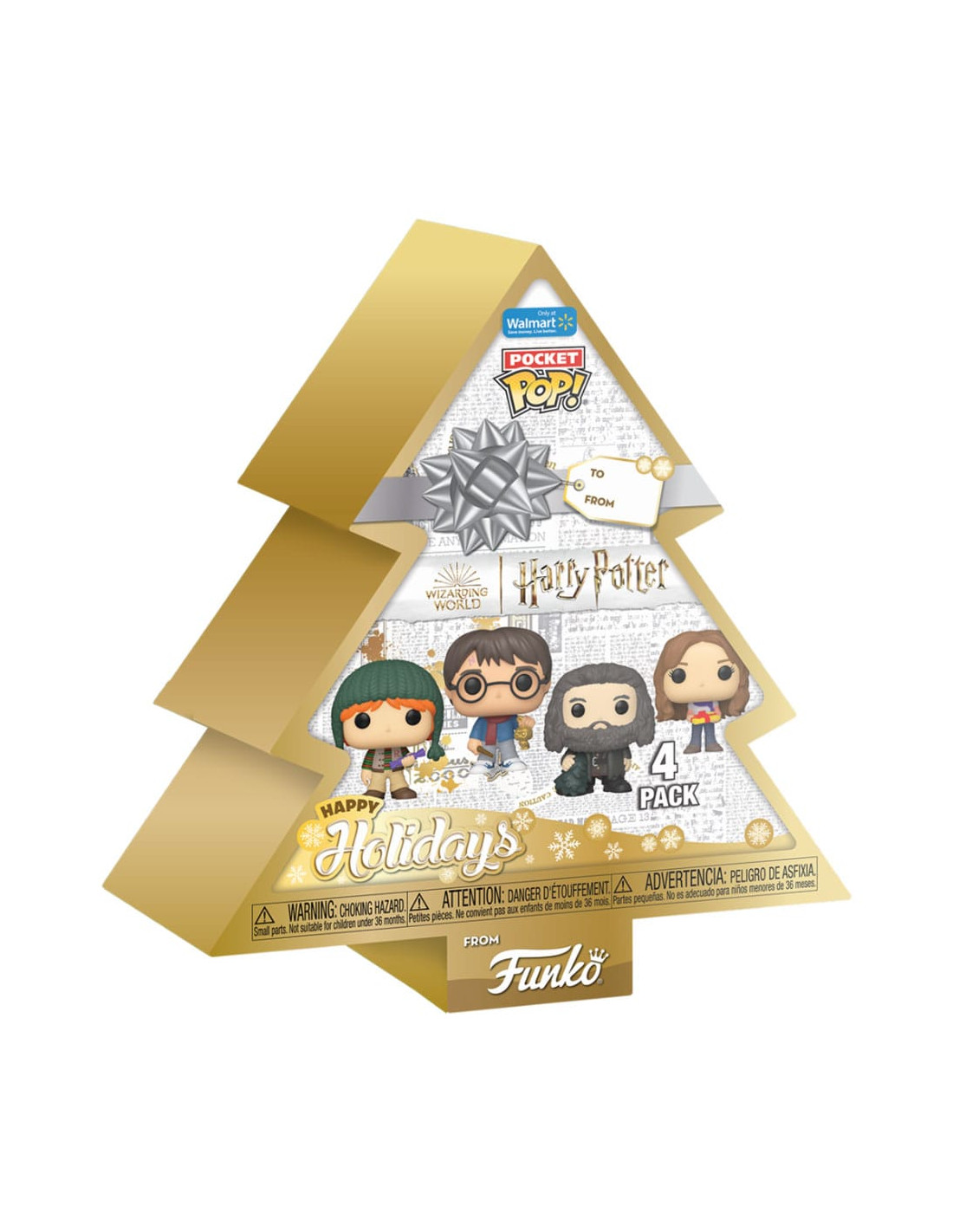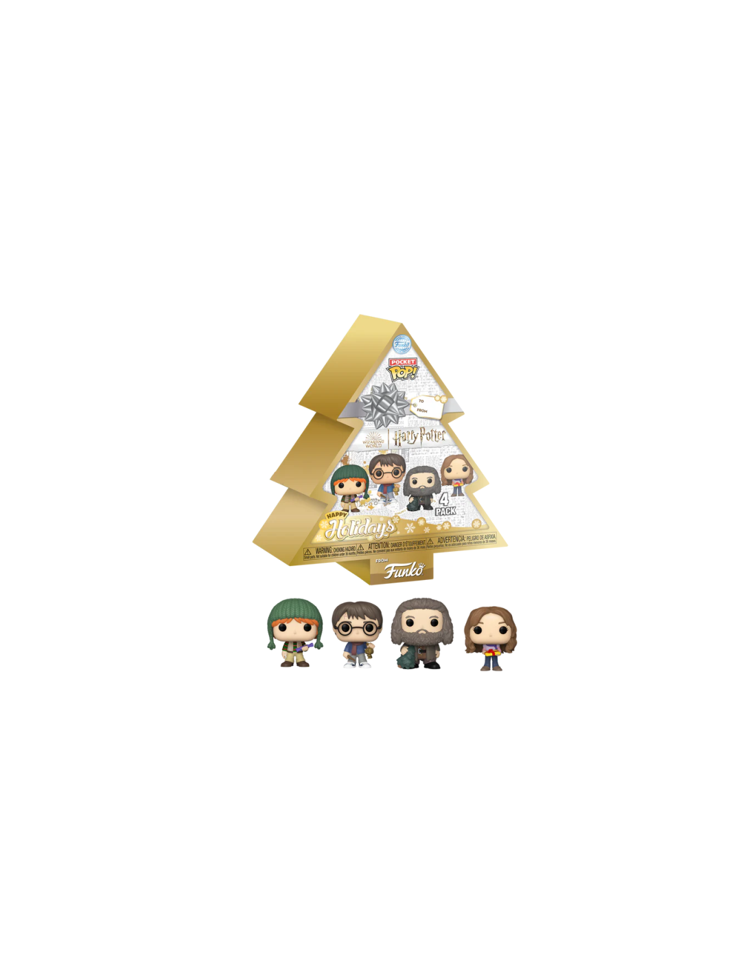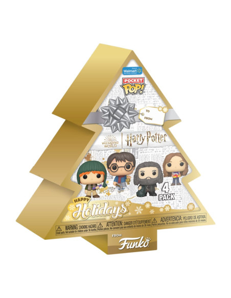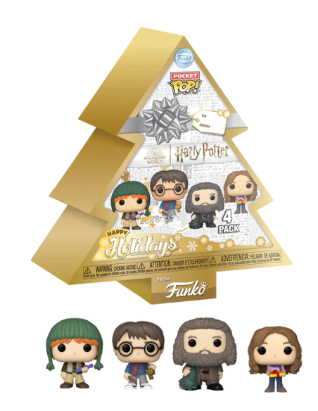 Pocket POP Arbol con 4 Figuras Harry Potter, Ron Weasley, Hagrid y Hermione Happy Holidays. Pack de 4 minifiguras de vinilo de la línea 'POP!', tamaño aprox. 4 cm. Vienen en un Blíster.