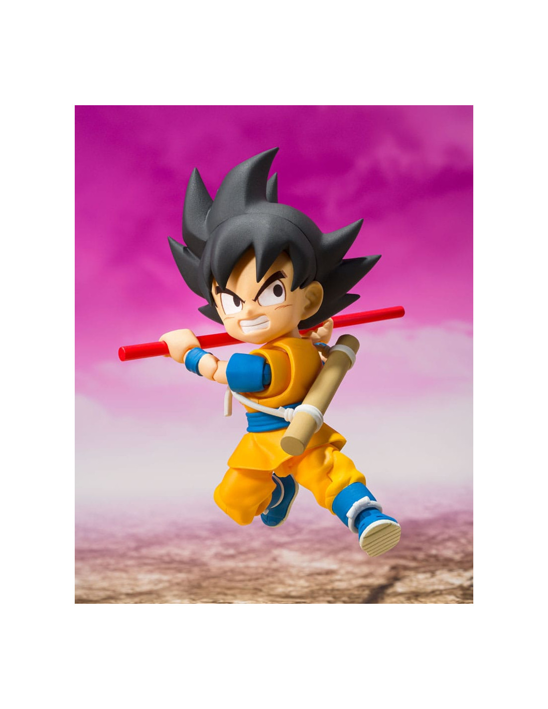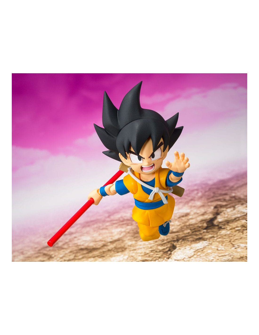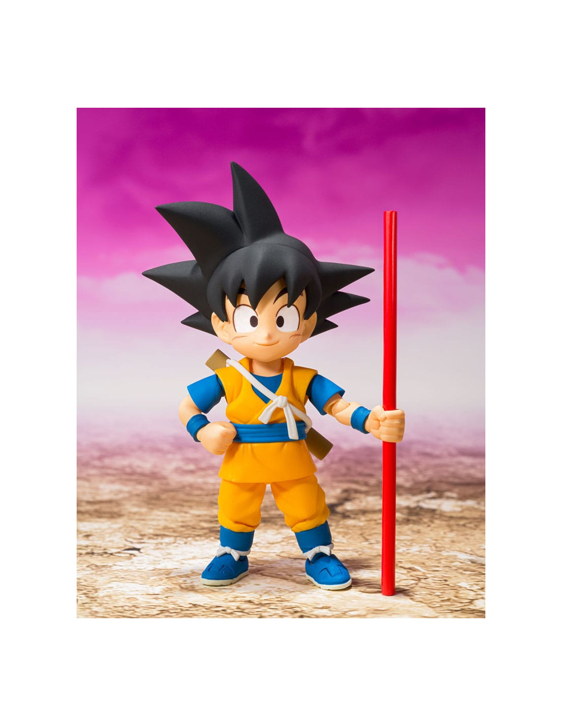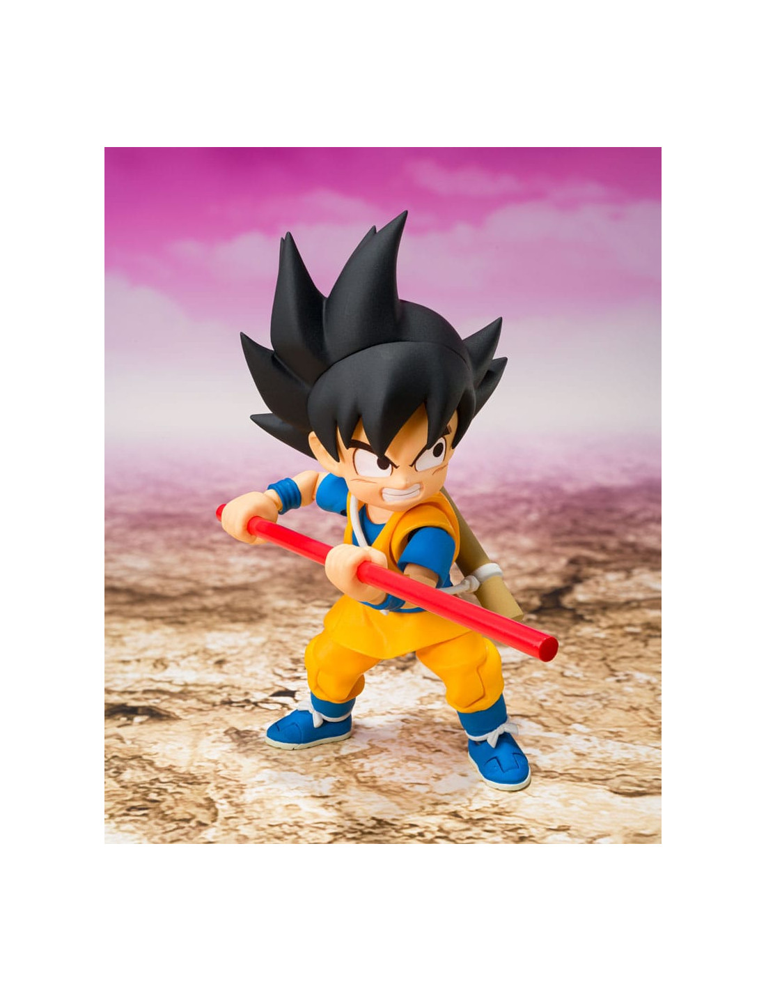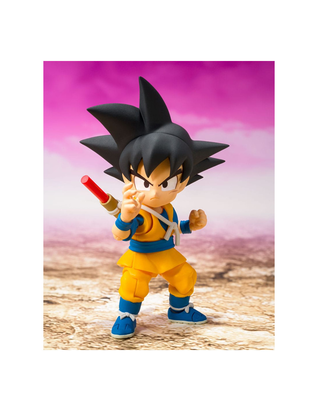 Tamashii Nations presenta, dentro de la colección S.H. Figuarts, la figura de Son Goku (Mini) -Daima-. Mide 7 cm y está basada en el personaje del anime "Dragon Ball Daima". Incluye 3x pares de manos intercambiables, 3x expresiones faciales (estándar, enfadado y de combate), partes del pelo y piezas de Nyoi stick. Puedes exponerla junto a las figuras de Vegeta y Piccolo (Mini) -Daima- (se venden por separado). UNIDADES LIMITADAS.