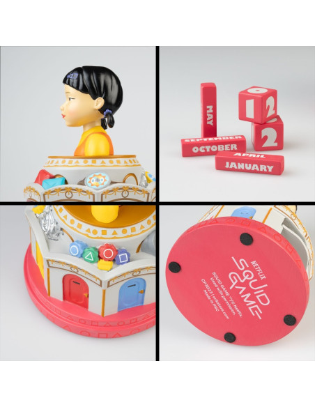 Calendario perpetuo en 3D fabricado con resina y pintado a mano a todo color. Incluye 5 bloques con días y meses que se pueden intercambiar y combinar para configurar todas las fechas posibles de un mismo año. Medidas: 12,1 x 12,1 x 15,5 cm.