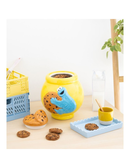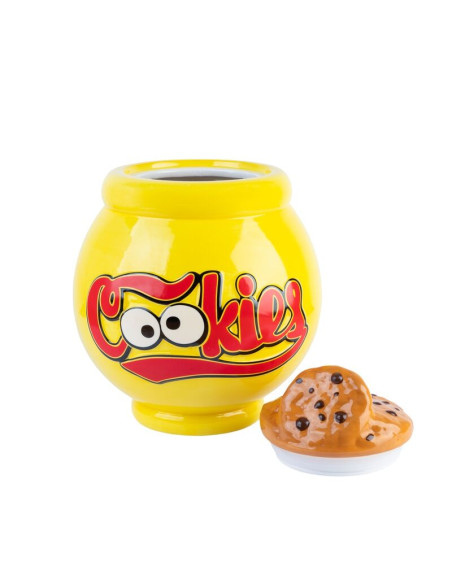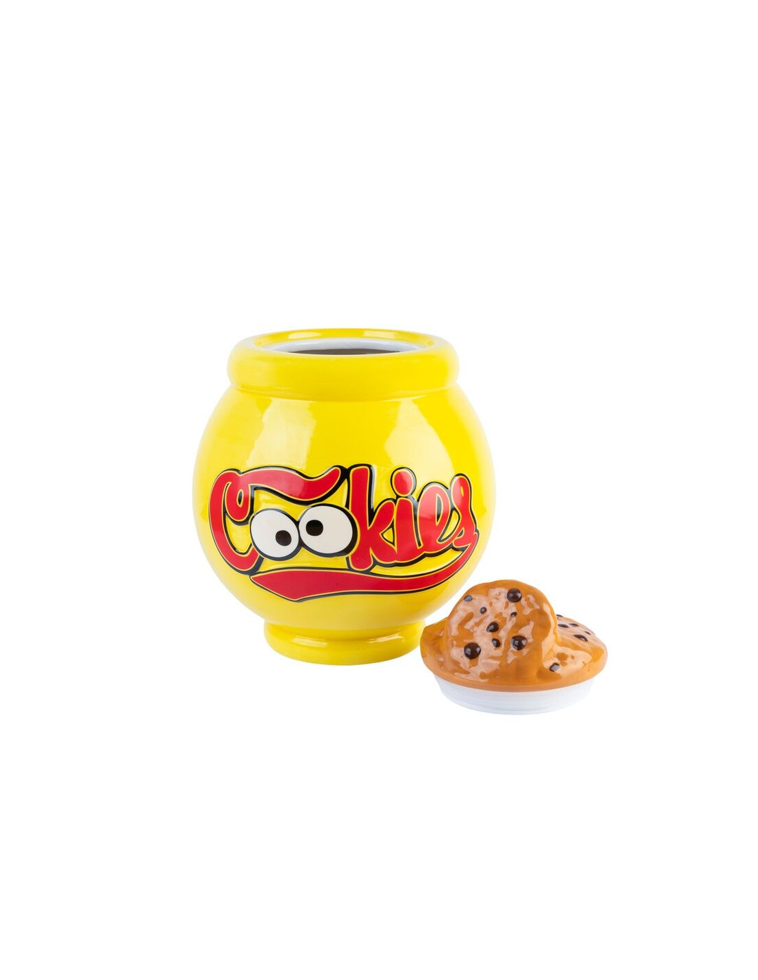 Galletero compuesto por un recipiente y una tapadera. Está modelado en relieve, pintado a mano y tiene acabado brillante. La tapadera incluye una junta de silicona que le aporta un cierre ajustado, con el fin de mantener crujientes las galletas del interior. No es apto para microondas ni lavavajillas. Material: dolomita. Medidas: 21 x 27 x 22 cm.