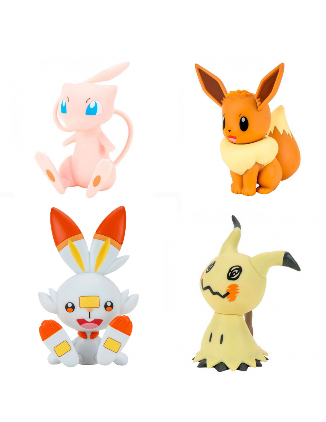 Figura de vinilo de Pokemon Kanto. Eevee, Mew, Scorbunny y Mimikyu, tamaño aprox. 10 cm.