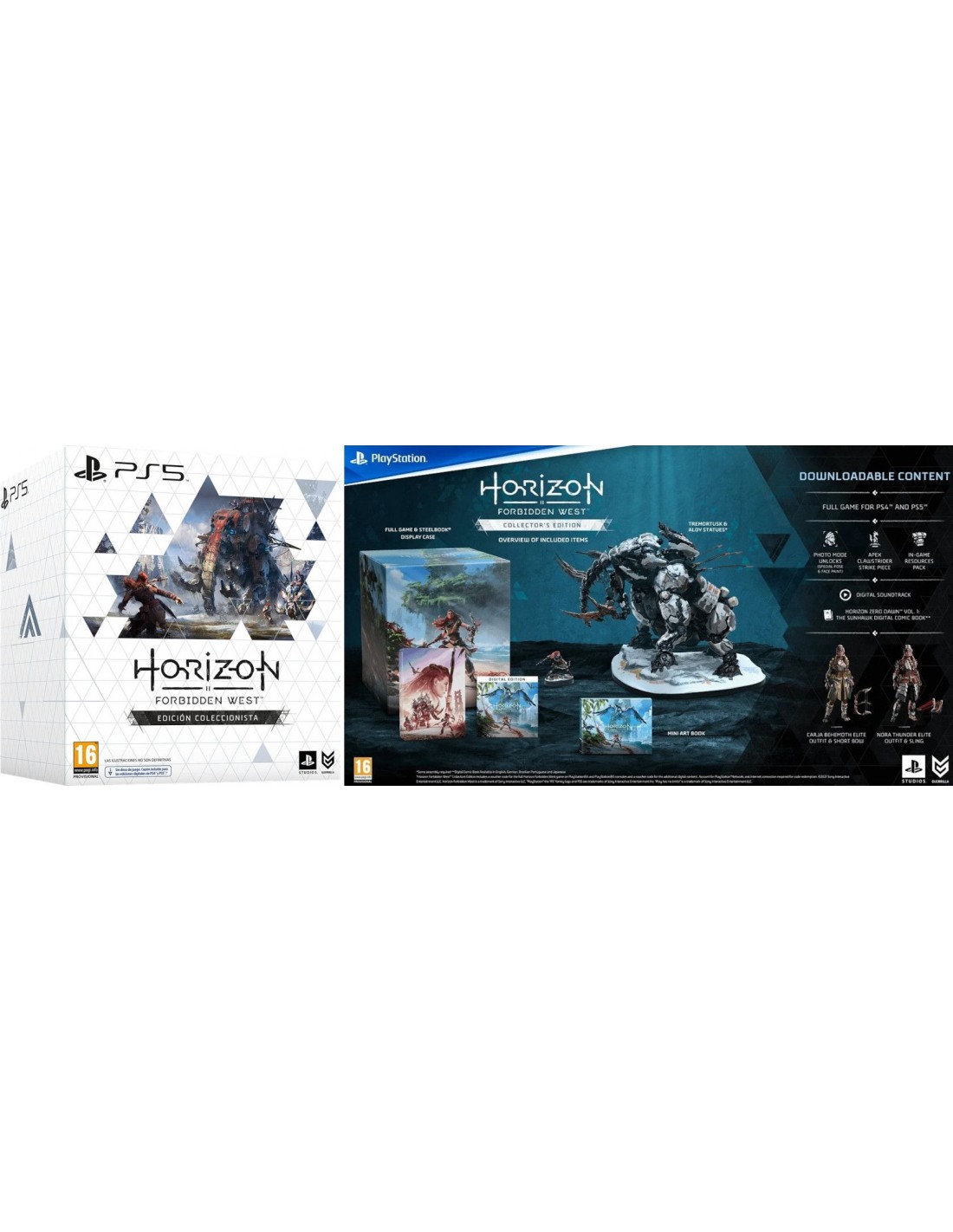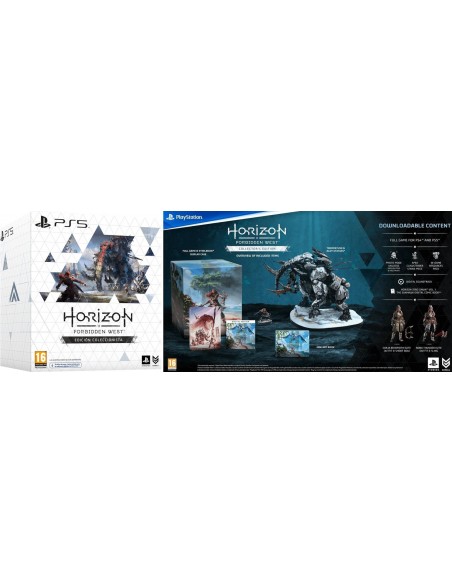 La Edición Coleccionista de Horizon II: Forbidden West incluye: -El juego Horizon II: Forbidden West -Steelbook con arte del juego -Mini Libro de Arte -Figuras Tremortusk y Aloy -Caja Edición Coleccionista