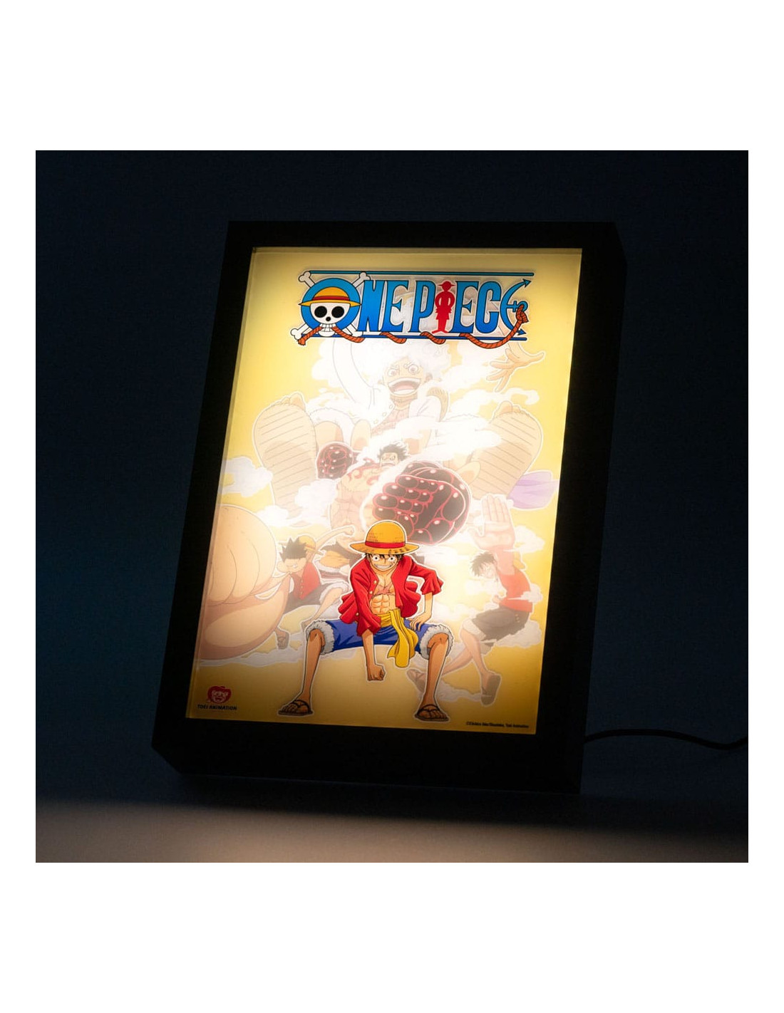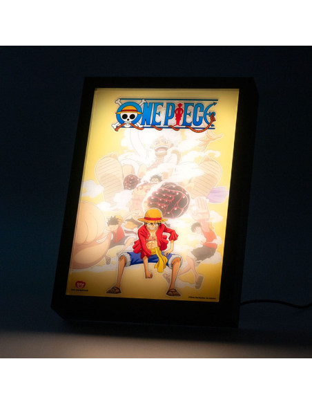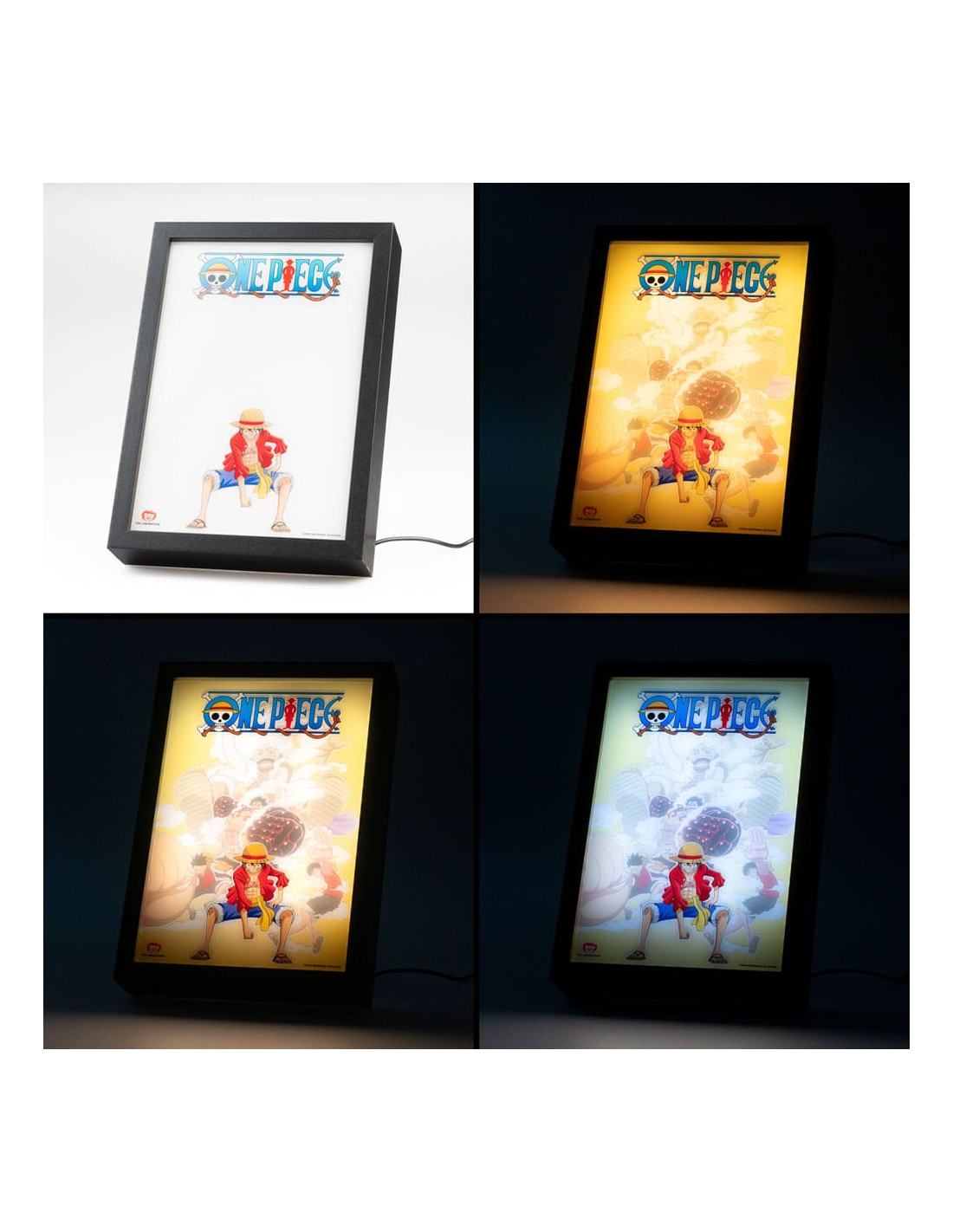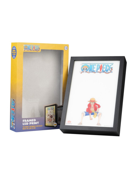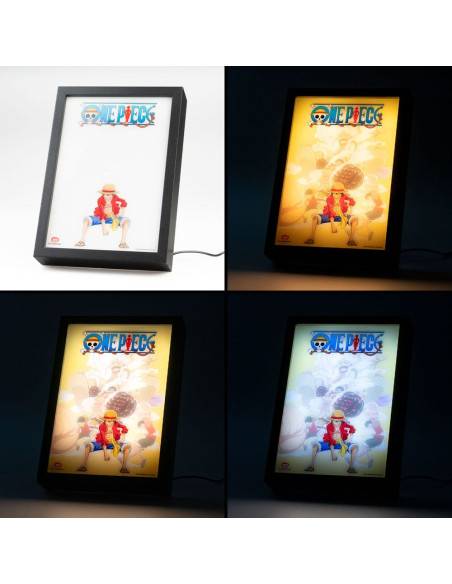 Lámina LED enmarcada que muestra un diseño cuando está apagada y, al encenderse, revela una imagen de fondo que complementa la principal, ofreciendo un aspecto totalmente distinto. Cuenta con 15 modos de iluminación LED: 3 temperaturas de luz (cálida, neutra y fría) regulables en 5 intensidades. Funciona con cable USB 5V DC 1A (incluido y no extraíble) con mando integrado para controlar los modos de luz. Incluye soporte trasero para mantener el marco en pie. Materiales: MDF y acrílico. Medidas: 20 x 28 x 5 cm.