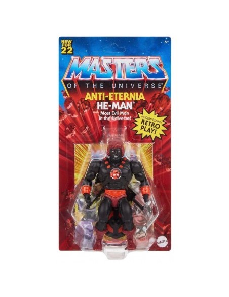 Mattel nos presenta esa colección de figuras de "Masters of the Universe" de la manera más retro posible. Podemos ver la figura de Anti-Eternia articulada y mide unos 14 cm.