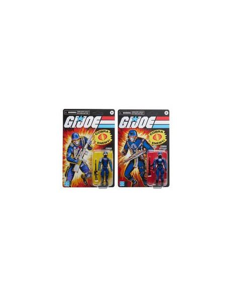 Hasbro presenta, dentro de la colección Retro Collection, este pack de 2 figuras de Cobra Trooper & Cobra Officer. Las figuras miden 9,5 cm y están inspiradas por el 40ª aniversario de la serie "G.I Joe". Cuenta con múltiples puntos de articulación y detalles premium. Cada Cobra incluye 1x arma y, además, vienen en su propio blíster.