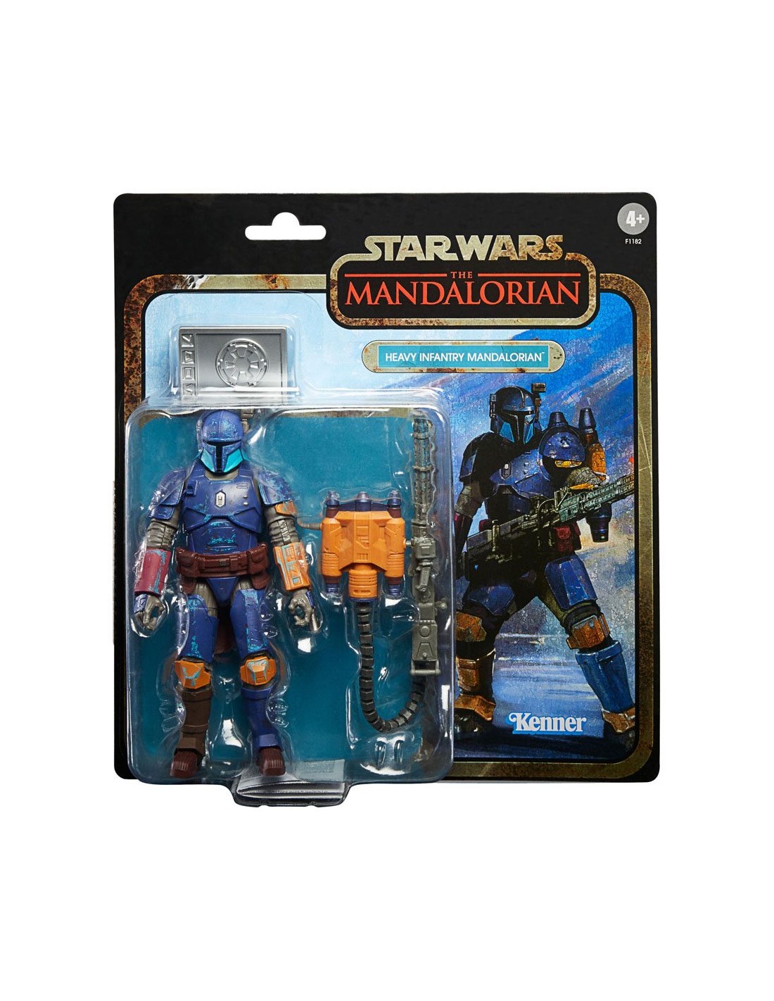 Esta figura de 15 cm de mandaloriano de infantería pesada fue diseñada con lujo de detalles para verse igual al personaje de la serie The Mandalorian, y cuenta con múltiples puntos de articulación. La figura viene en un empaque The Black Series vintage inspirado en las imágenes estilizadas que aparecen durante los créditos finales de la serie de Disney Plus.