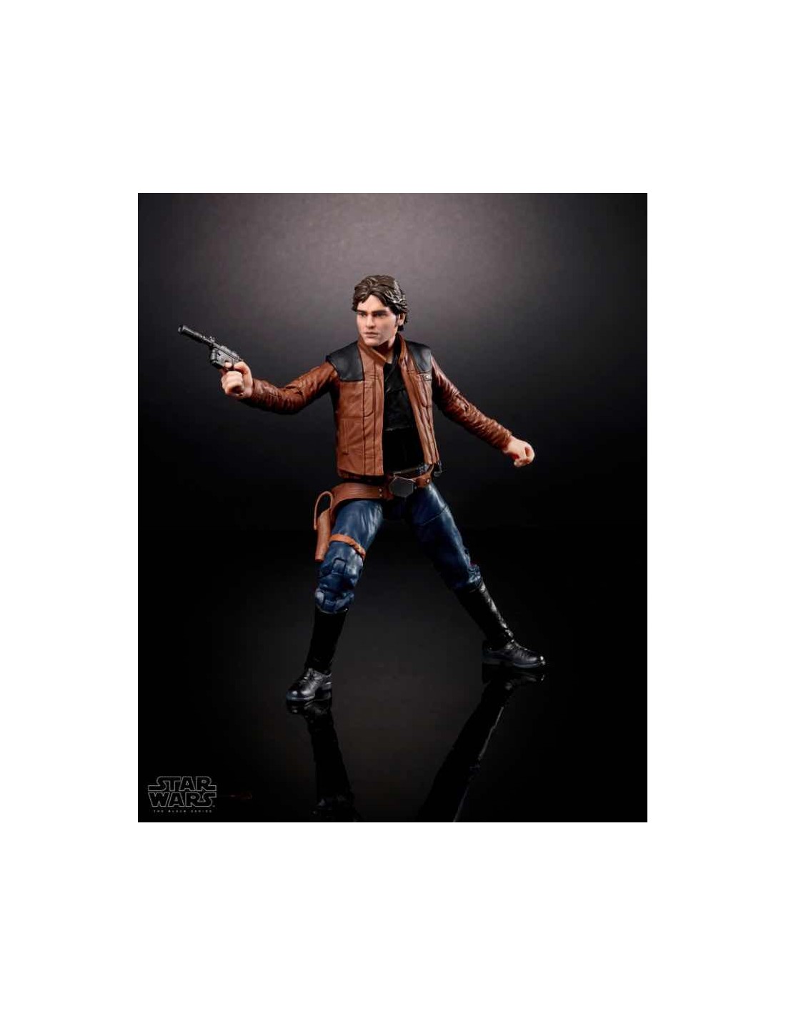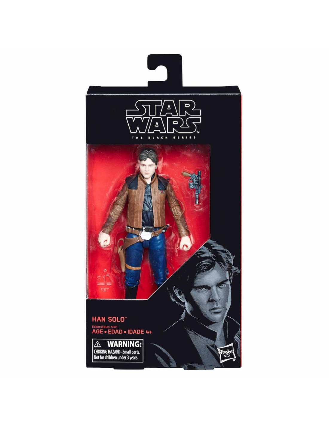 Hasbro presenta dentro de su colección Star Wars The Black Series la figura de Han Solo tal y como aparece en el nuevo spin-off de la saga Star Wars "Han Solo". La figura es articulada y está hecha en PVC y mide unos 15 cm.