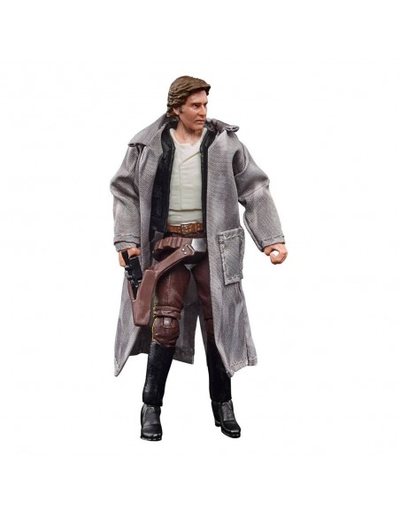Hasbro presenta dentro de su colección Star Wars Vintage la figura de Han Solo vestido de camuflaje como aparece aparece en la película de Star Wars E6 en la batalla de Endor. La figura es articulada y está hecha en PVC y mide unos 10 cm. Incluye gabardina de camuflaje y su pistola blaster como complemento.
