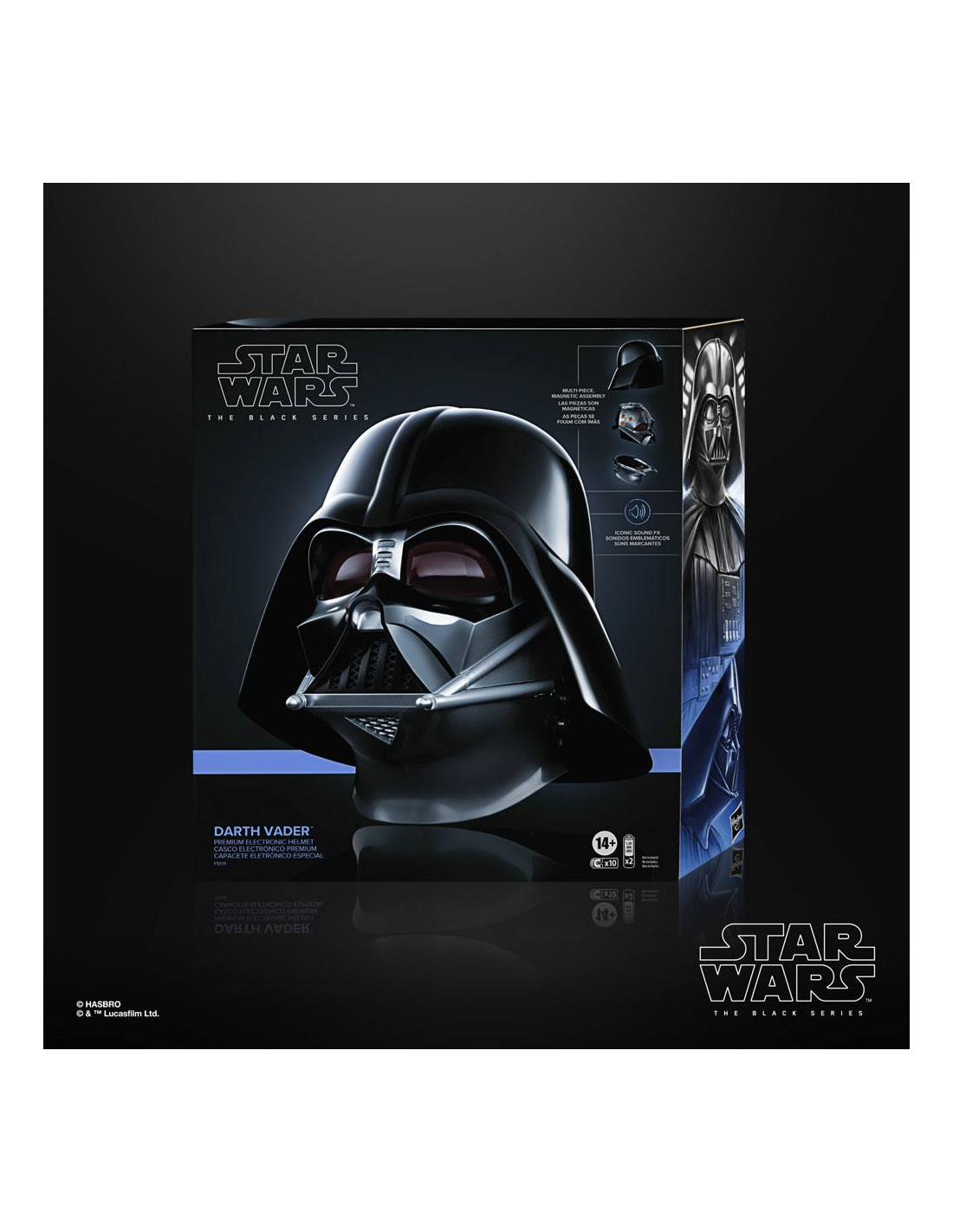 Hasbro presenta esta réplica electrónica del casco de Darth Vader tal y como aparece en la serie de Obi Wan Kenobi. La serie tiene lugar varios años tras los dramáticos sucesos de Star Wars: La venganza de los Sith, en donde Kenobi enfrentó la corrupción de su amigo y aprendiz Jedi Anakin Skywalker, quien se convertiría en el Lord Sith Darth Vader. El casco tiene un decorado detallado, diseño inspirado en la serie, múltiples piezas y emblemáticos sonidos de respiración y tiene puntos de conexión magnética entre el collar, la máscara y la capucha. Viene con una base para aumentar las opciones de exhibición y requiere 2x pilas 1.5v AAA *no incluidas.