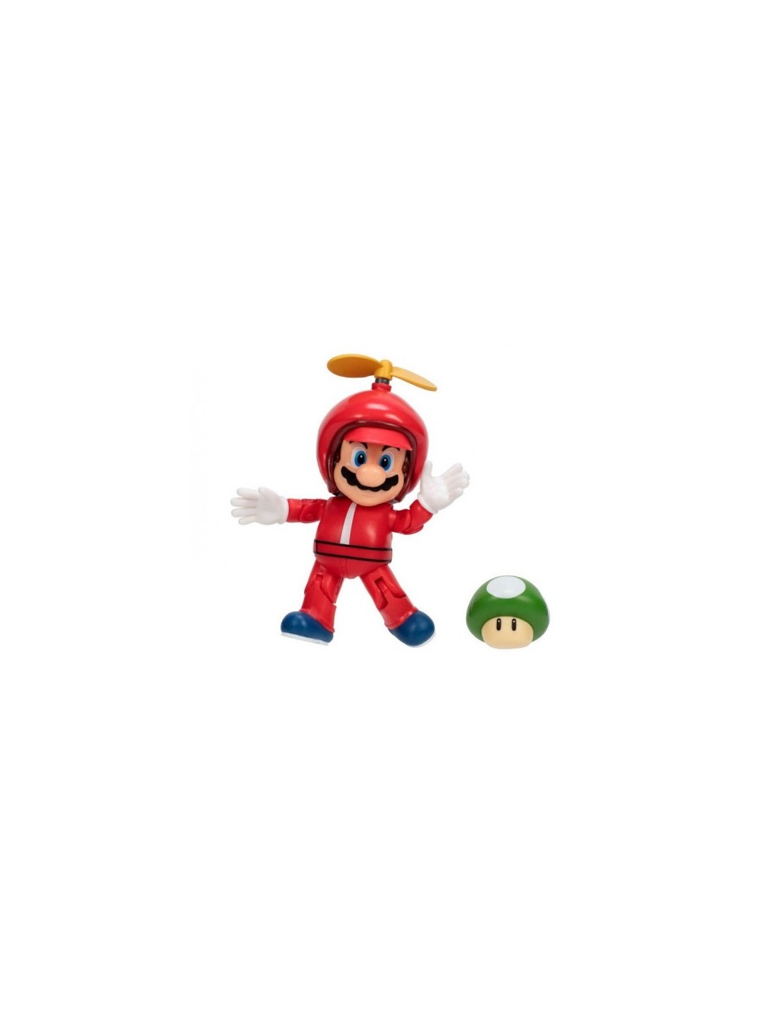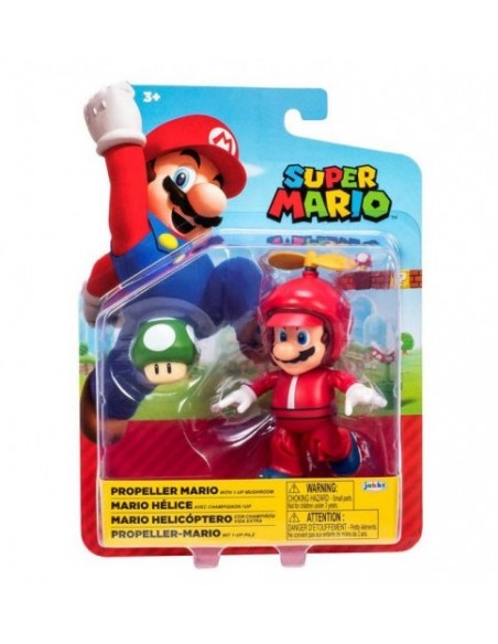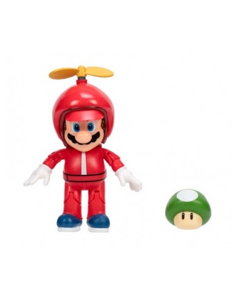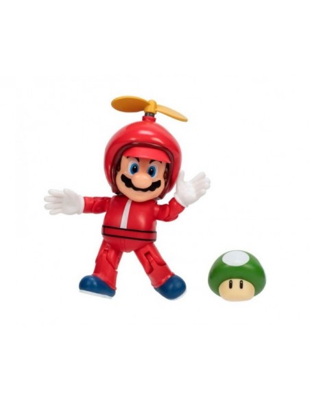 Figura articulada del videojuego Super Mario del personaje Mario Helicóptero con Champiñón Vida Extra. Mide unos 12 cm. Con licencia oficial.