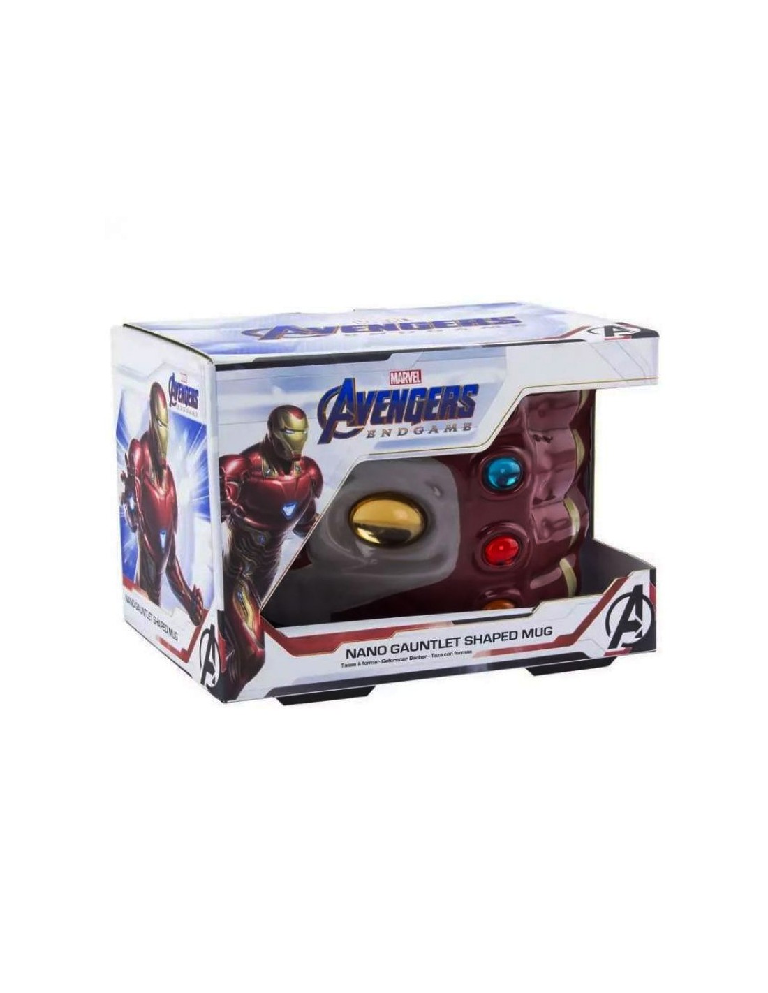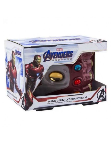 Taza con forma del nano guantelete que utilizó Iron Man en Avengers Endgame. · Fabricada con cerámica. · Con capacidad para 500 ml. · Se entrega en una caja de cartón con ventana. · Fabricada por Paladone.