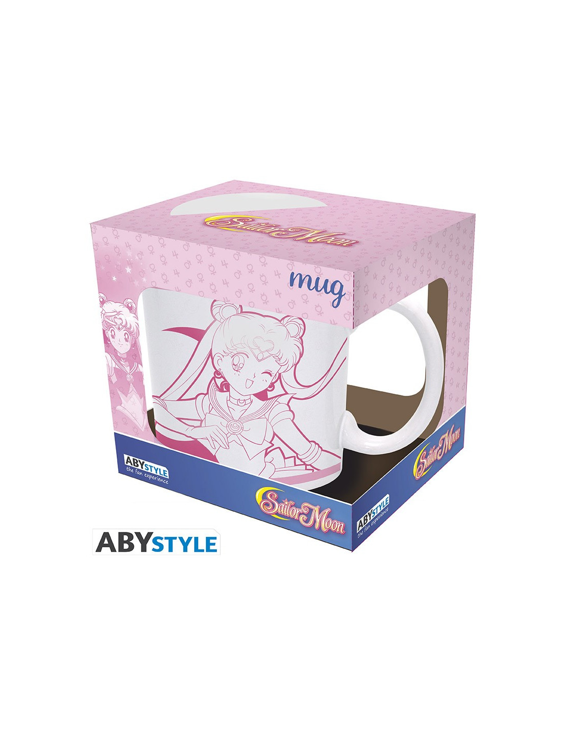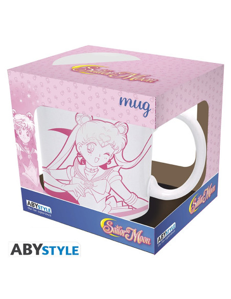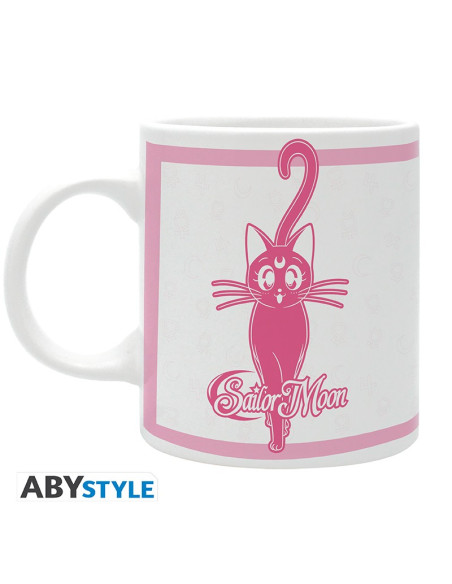 ¡Ella lucha en nombre de la luna, por el amor y la justicia! ¡La reconociste claro, ella es Sailor Moon en compañía de Luna! - Taza en cerámica de alta calidad. Tamaño estándar (320ml) - Embalaje : Caja con ventana negra. - Apto para lavavajillas y microondas.
