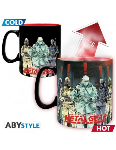¡Disfruta de tu bebida sigilosamente con esta taza termocambiable Metal Gear Solid de ABYstyle! Date prisa, tus enemigos te detectarán y el temporizador aparecerá tan pronto como la taza se caliente.