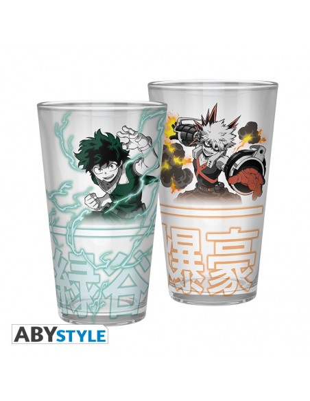 ¿Quién es el más fuerte entre Izuku y Bakugo? ¡No te pierdas este duelo explosivo con este genial vaso grande My Hero Academia de ABYstyle! - Material: vidrio de alta calidad. - Tamaño King (40cl) - No apto para microondas y lavavajillas. - Embalaje: caja de cartón abierta.