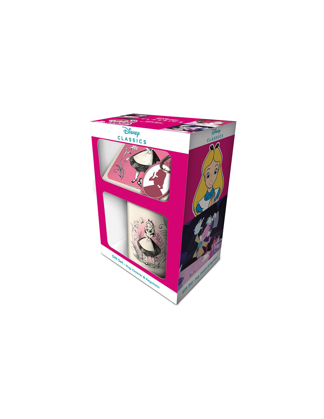 Pack formado por: 1. Taza de cerámica con asa con capacidad para 315 ml. 2. Llavero de goma con anilla metálica. 3. Posavasos de 10 x 10 cm fabricado con corcho. · Se entrega en una caja de cartón con dos oberturas que permiten ver los tres elementos. · Con licencia oficial de DISNEY.
