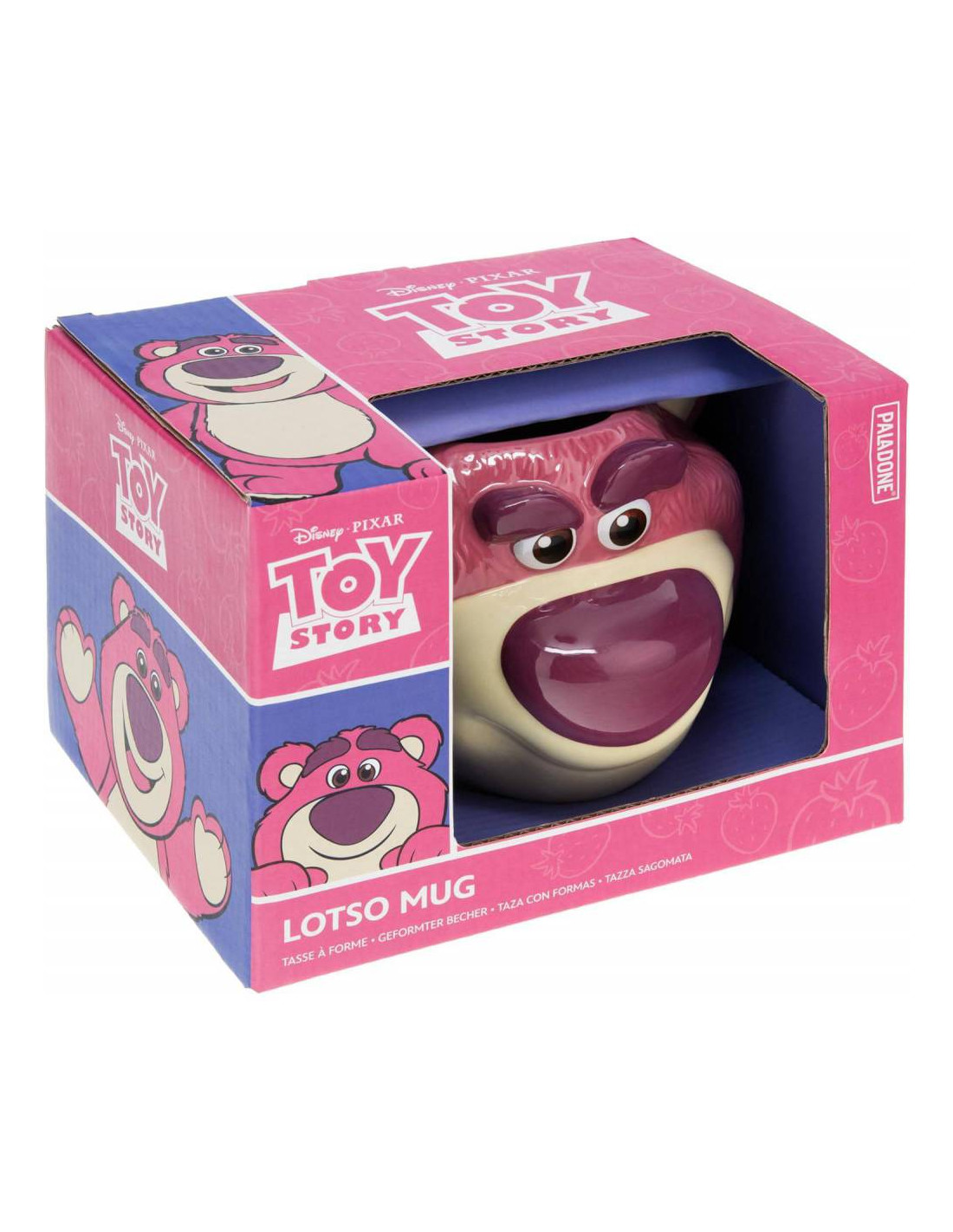 Empieza el día con tu bebida favorita en esta taza Lotso. Esta taza de cerámica rosa de 680 ml (22 onzas líquidas) tiene la forma del oso Lotso de Toy Story, el osito de peluche con aroma a fresa que gobierna la guardería Sunnyside. Su gran capacidad te permite disfrutar de una ración extragrande de té, café o chocolate caliente. No apta para lavavajillas ni microondas. La taza Lotso será un complemento perfecto para tu despensa. Es perfecta para los fans de Toy Story de Disney Pixar.